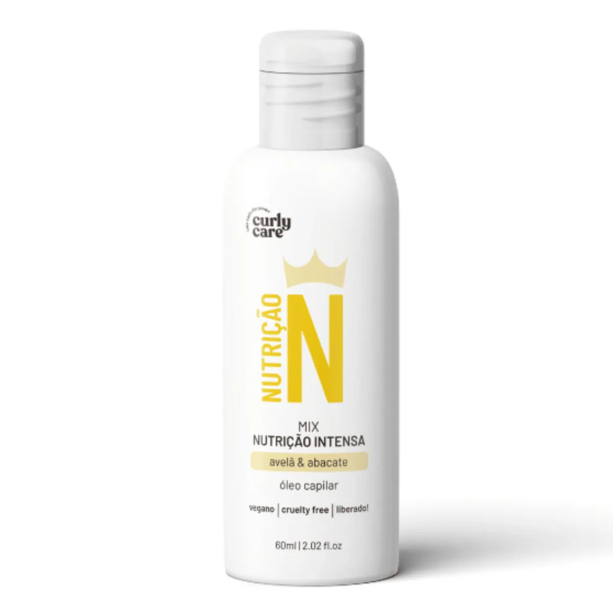 Mix Nutrição Intensa N Curly Care - 60mL | Nutrição Profunda e Restauração Capilar O Mix Nutrição Intensa N da Curly Care é um blend poderoso de óleos vegetais formulado para uma nutrição profunda e intensiva dos cabelos. Combinando dois ingredientes altamente nutritivos, este óleo penetra na fibra capilar, restaurando e fortalecendo os fios: Óleo de Avelã – Rico em ácidos graxos, nutre profundamente e protege contra o ressecamento.