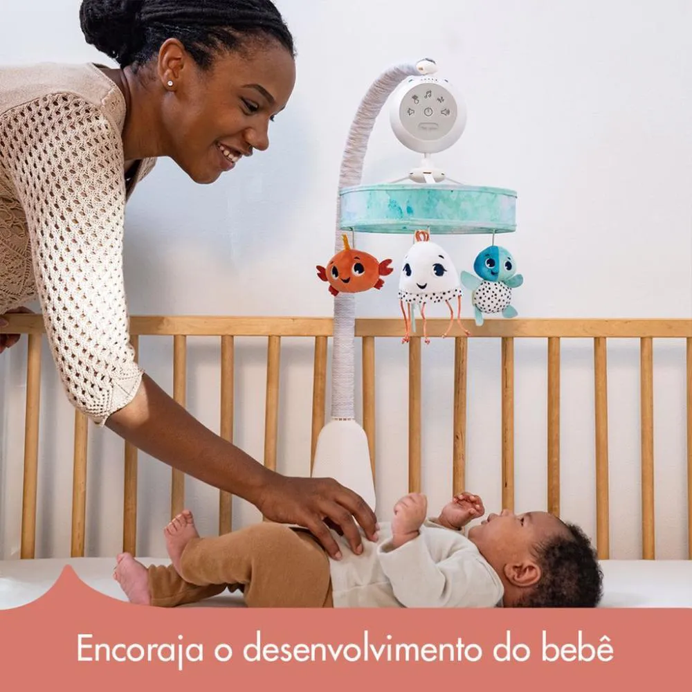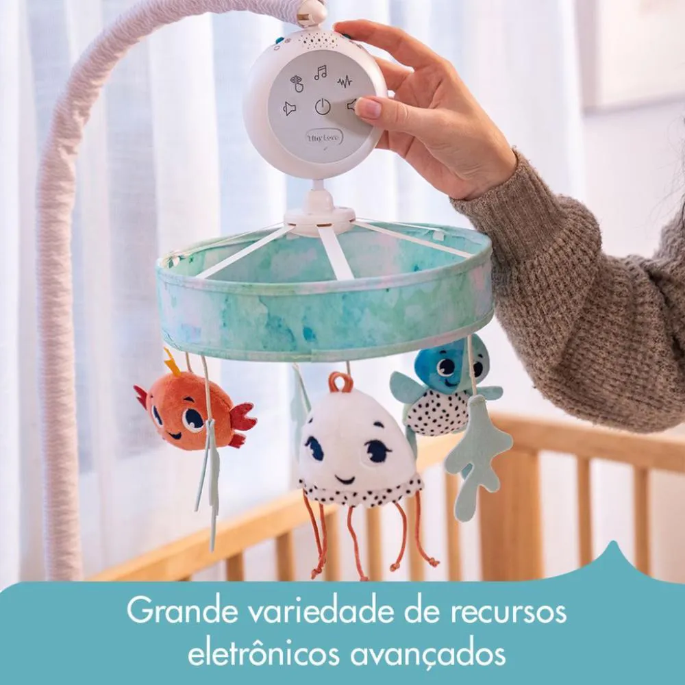 Lindo, decorativo e com recursos eletrônicos conheça o Móbile Musical Luxe Treasure The Ocean. Um móbile especial que combina o desenvolvimento com detalhes decorativos, uma grande variedade de recursos eletrônicos e um encantador tema inspirado no oceano: 15 melodias, um som único que funciona como mágica para adormecer o bebê, 5 opções de ruído branco, rotação envolvente e uma variedade de controles personalizáveis tornam este encantador móbile a escolha perfeita para o seu pequeno. Cativante na hora de brincar e calmante na hora de dormir.