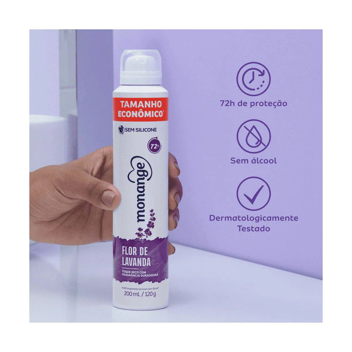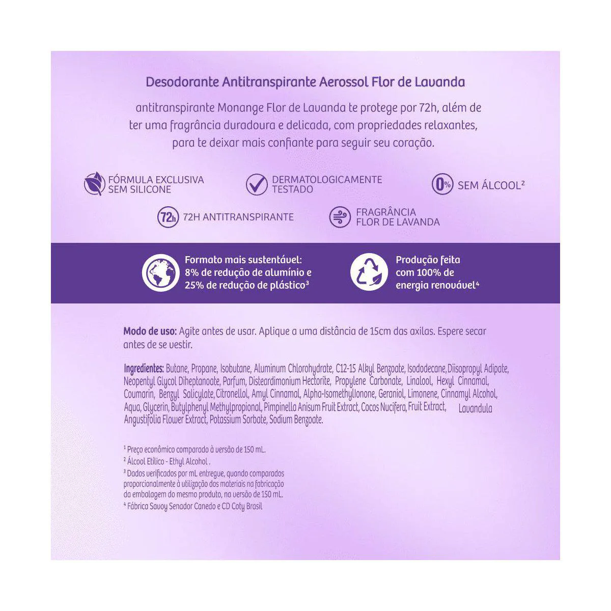 Desodorante Antitranspirante Aerosol Monange Flor de Lavanda Feminino 72h 200ml
