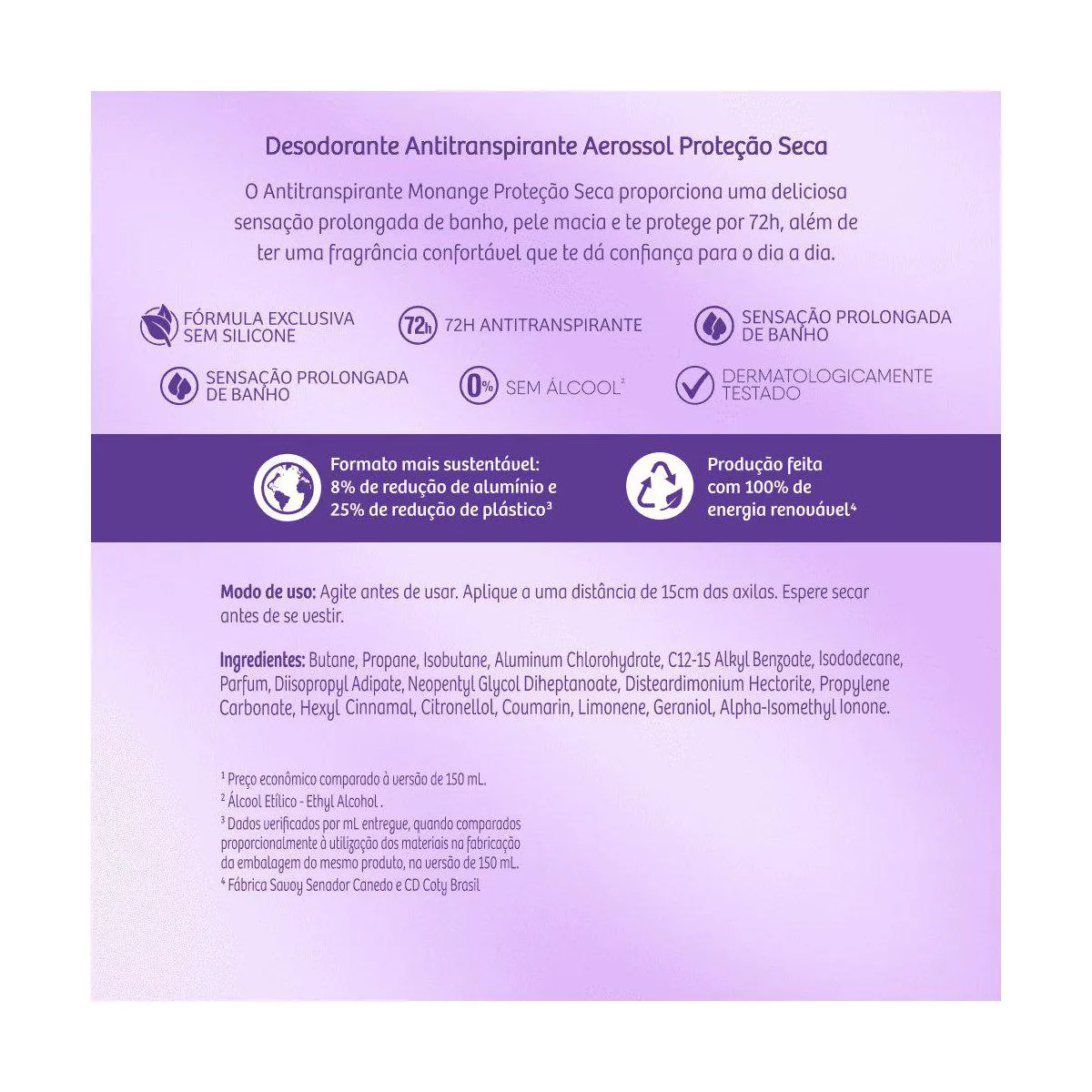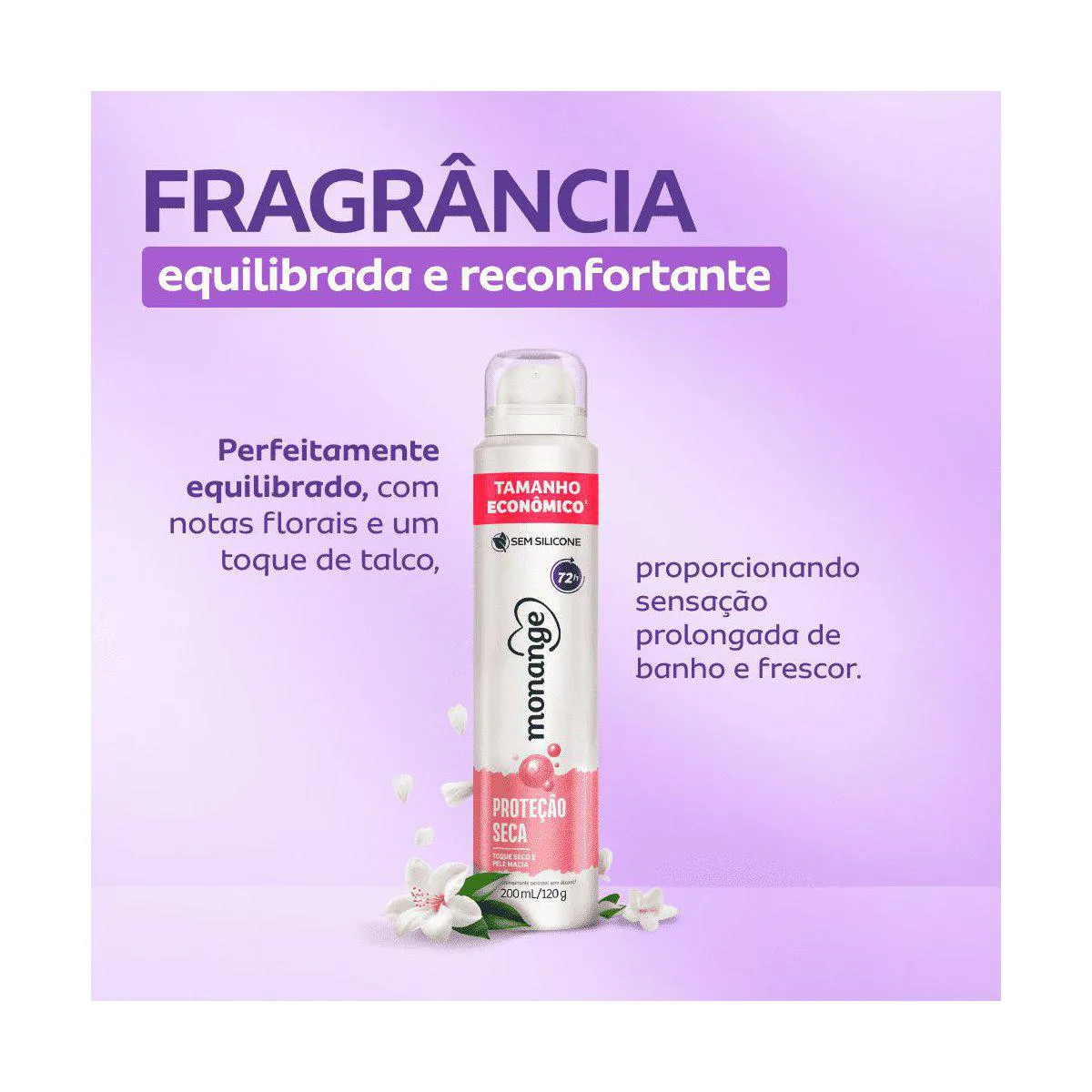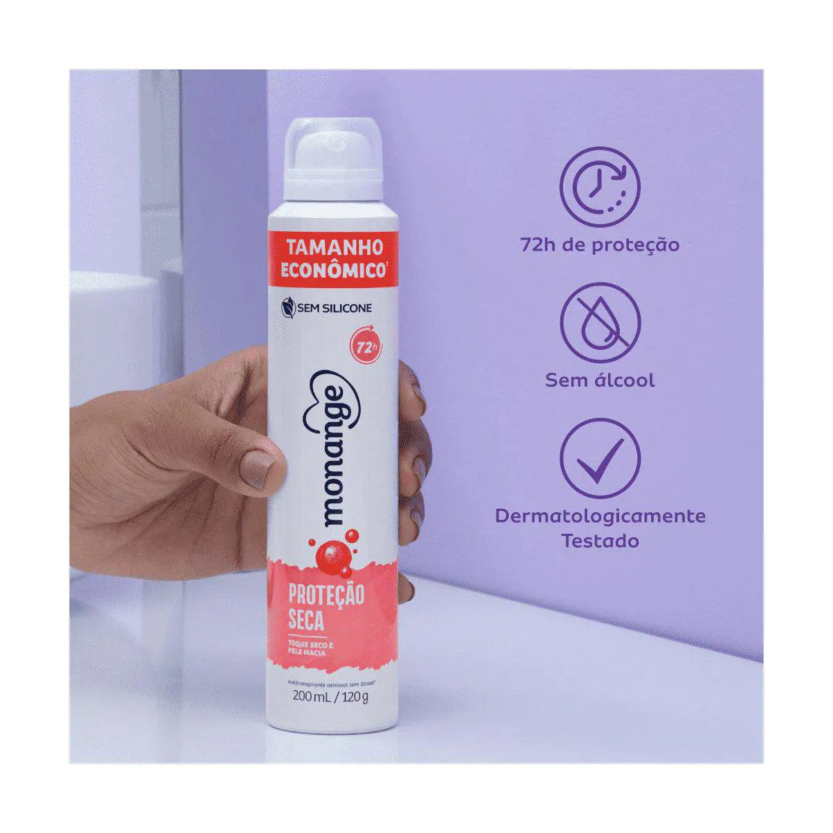 Desodorante Antitranspirante Aerosol Monange Proteção Seca Feminino 72h 200ml
