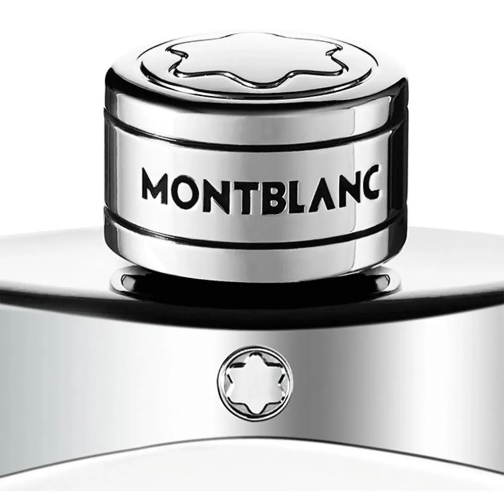 - Design de frasco moderno com estética em preto e branco, representando sofisticação e exclusividade da marca Montblanc.