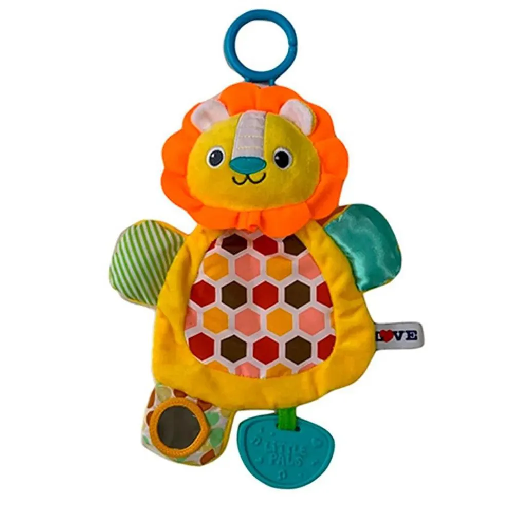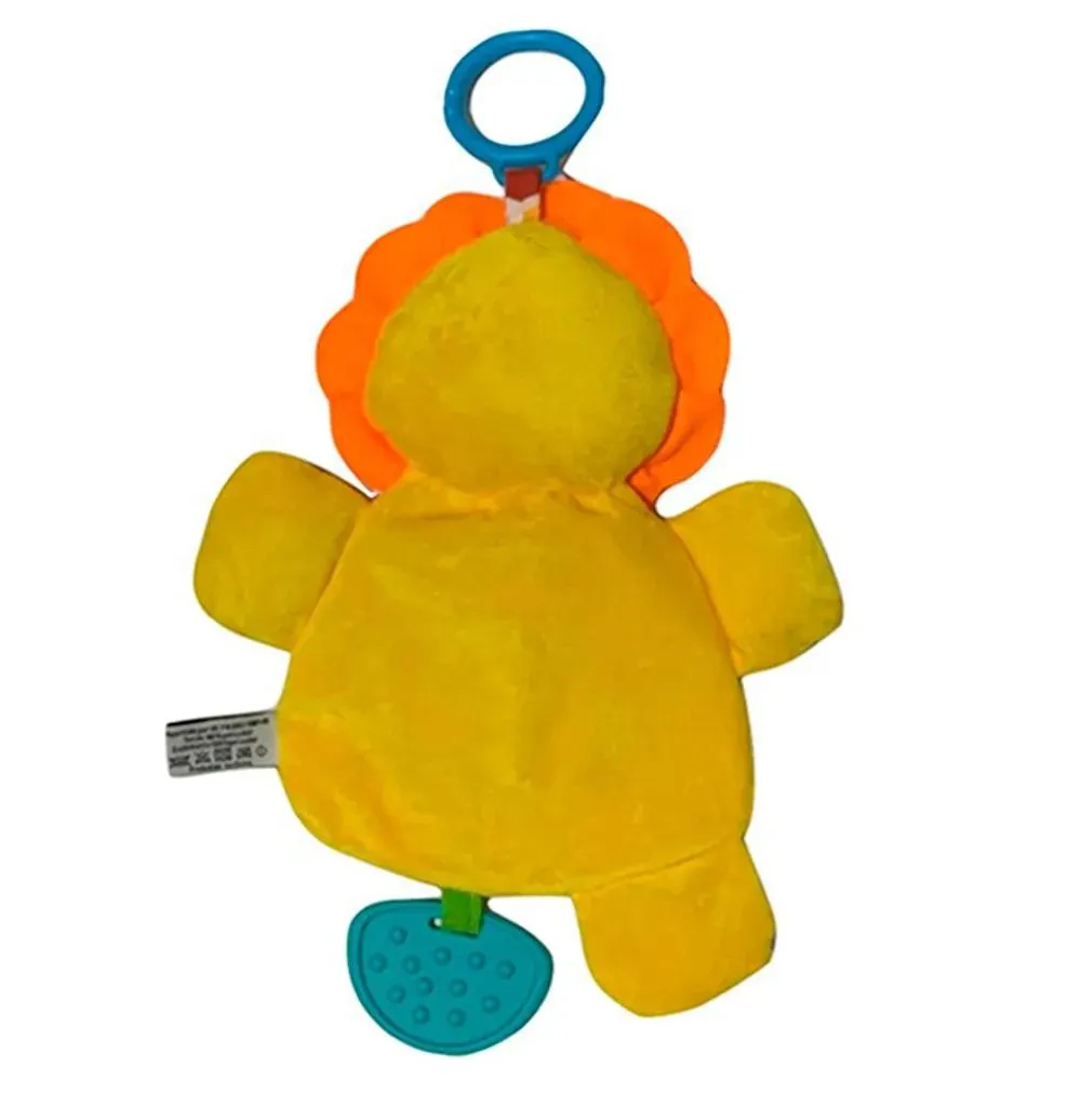 Possui um formato lindo e muito fofo de Leão. É bem colorido em tons fortes, com texturas diferentes, estimulando o visual e o tato do bebê, além de ser super macio, dando maior segurança para os pequenos.