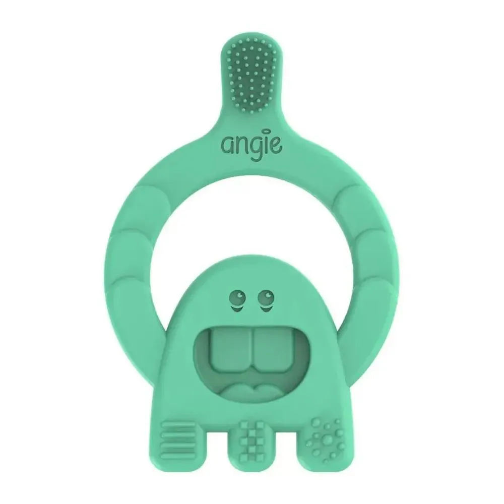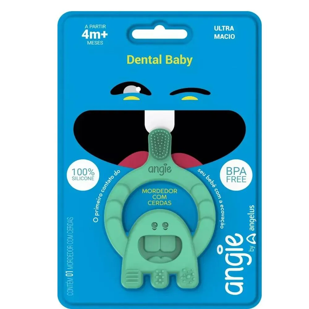 O novo Dental Baby Angie é um mordedor infantil com cerdas de silicone que lhe auxiliará a estimular o hábito da higiene bucal do(a) seu bebê e aliviar o desconforto da erupção dentária, a partir dos 4 meses de idade.