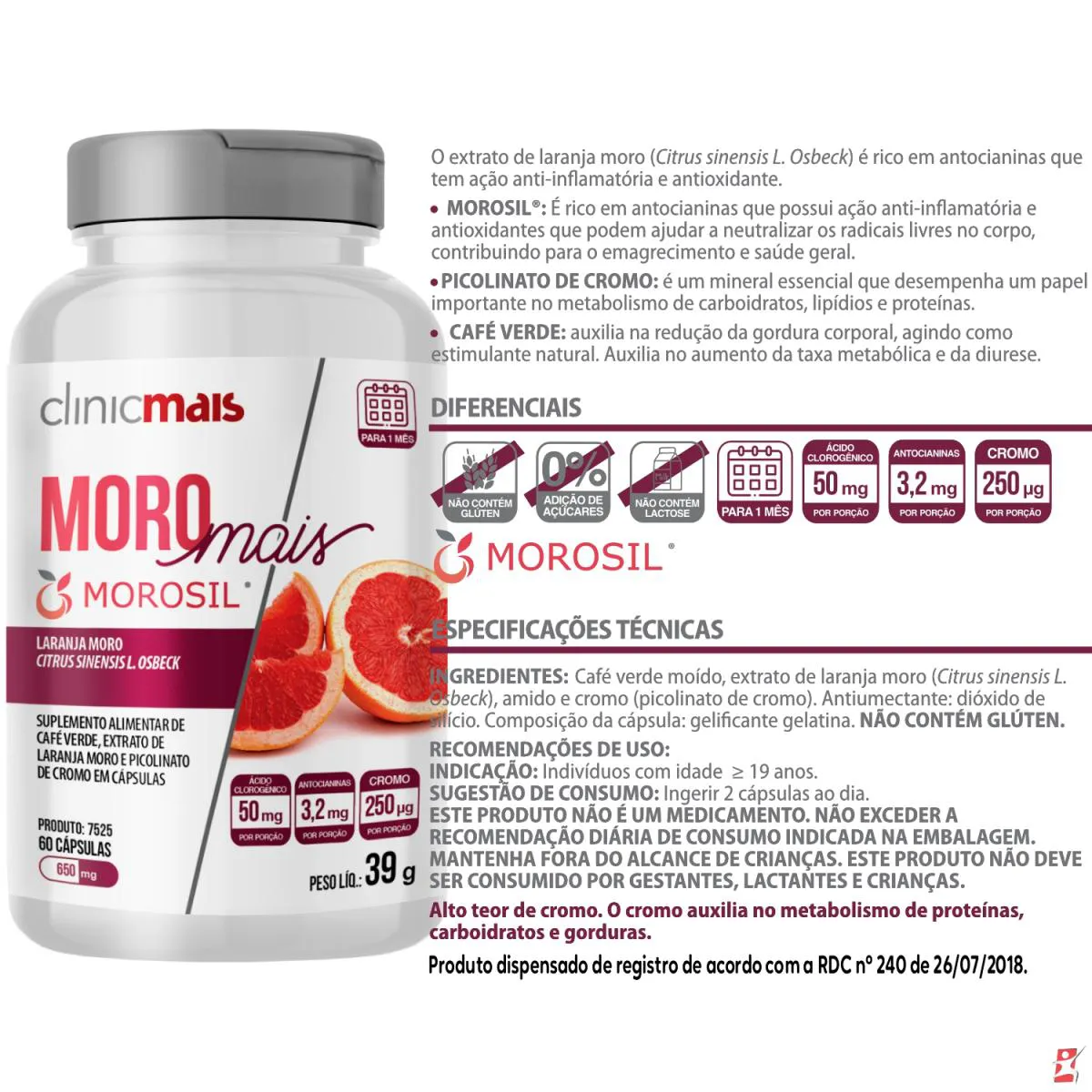 Moro Mais Morosil Laranja Moro + Café Verde + Picolinato de Cromo 60 Capsulas - Clinicmais