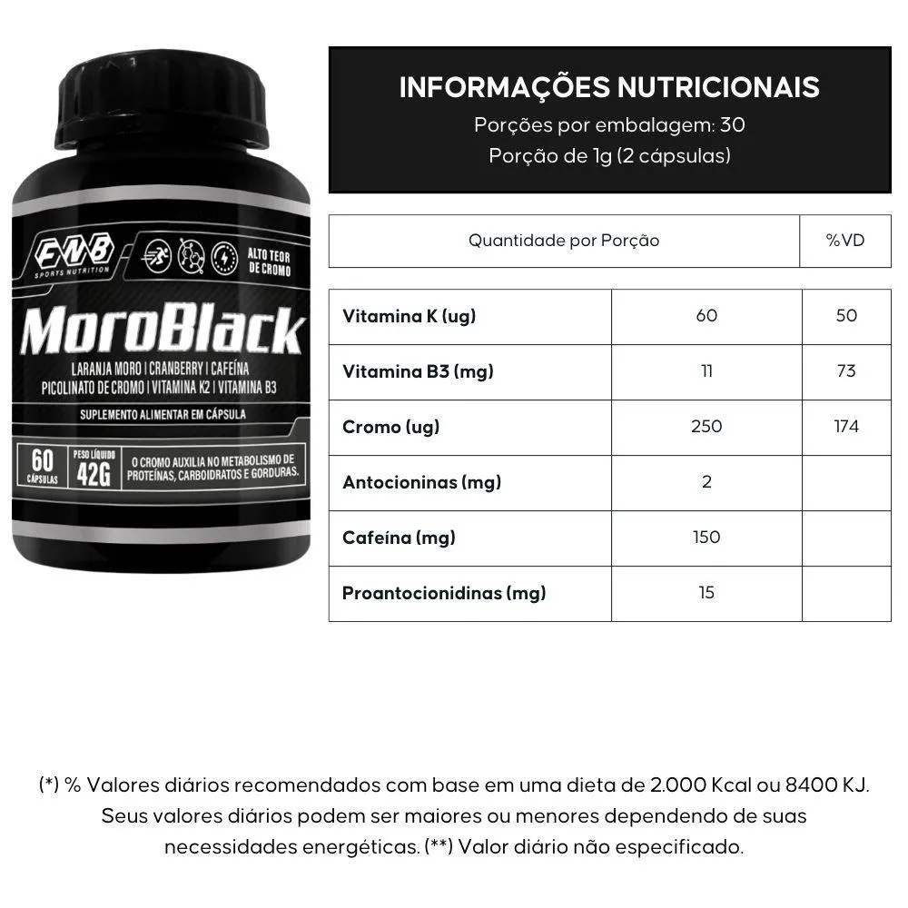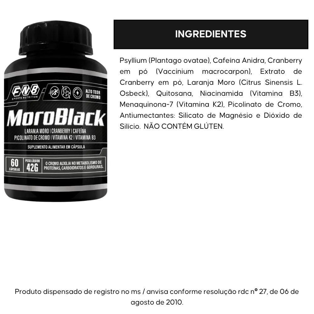 Moroblack (Pssylium, Moro, Quitosana, Cromo E Vitaminas) 60 Cápsulas - Fnb Sports