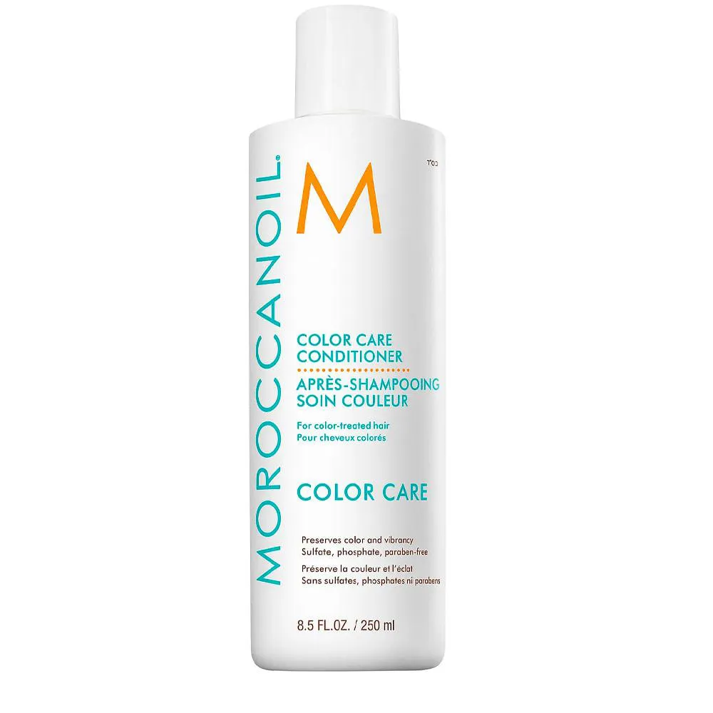 O Moroccanoil Cuidado da Cor condicionador 250ml é um condicionador da linha Color Care, desenvolvido para cabelos coloridos ou com mechas. Enriquecido com tecnologia ArganID, óleo de argan e extrato de romã, hidrata, desembaraça e protege a cor contra o desbotamento, prolongando sua vivacidade por até 10 lavagens, conforme testes da marca. Sua fórmula leve contém um Environmental Protection Blend com propriedades fotoprotetoras, combatendo danos causados por raios UV e agressores ambientais. Livre de sulfatos, fosfatos e parabenos, promove brilho intenso, maleabilidade e uma aparência saudável. Apresentado em um frasco de plástico com 50% de material reciclado pós-consumo e tampa flip-top, é prático, sustentável e ideal para uso diário.