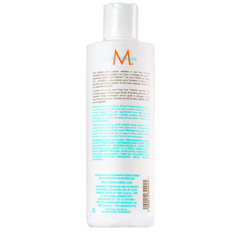 Após o shampoo Moroccanoil Frizz Control, aplique nos comprimentos e pontas dos cabelos úmidos. Massageie suavemente e deixe agir por 2-3 minutos. Enxágue bem. Use diariamente para manutenção de fios propensos a frizz.