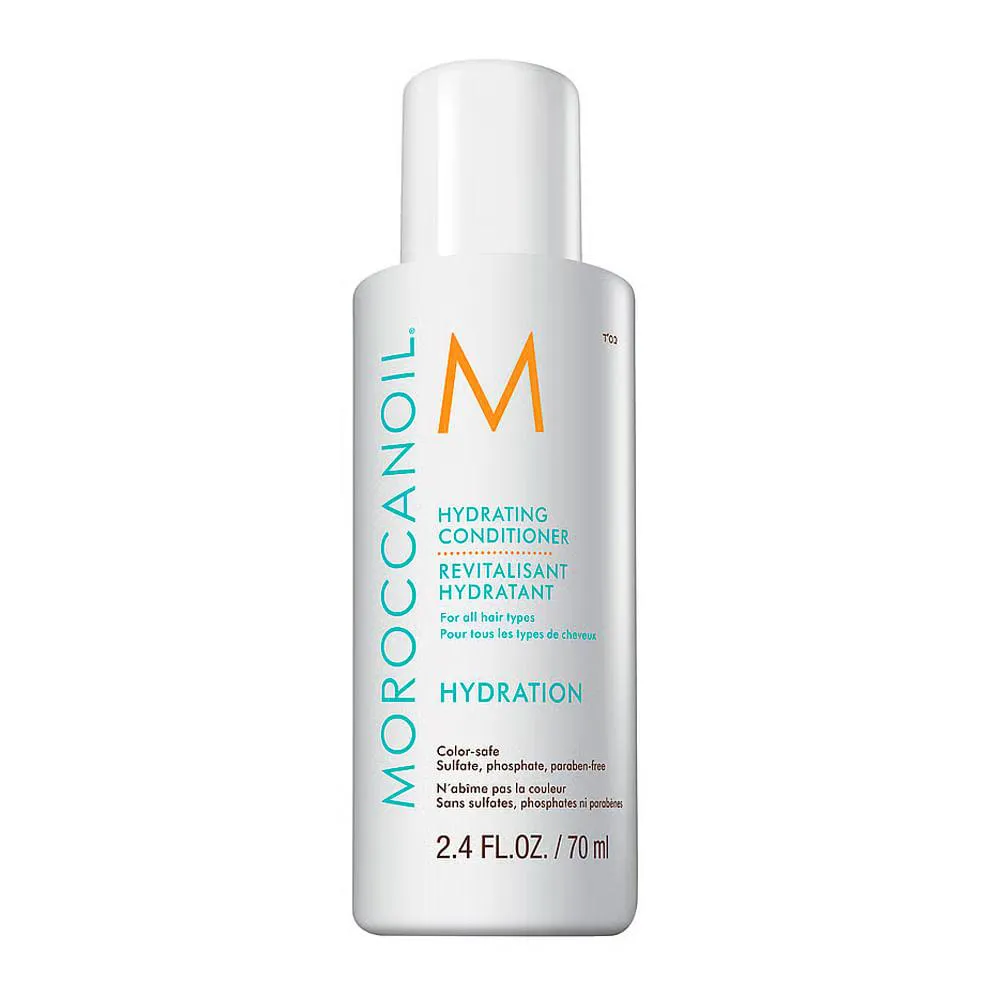 O Moroccanoil Hydration Condicionador Hidratante 70ml é perfeito para cabelos normais a secos, oferecendo hidratação, desembaraço e brilho com óleo de argan e algas vermelhas. Livre de sulfatos, parabenos, cruelty-free, com frasco compacto, é ideal para uso diário ou viagens.
