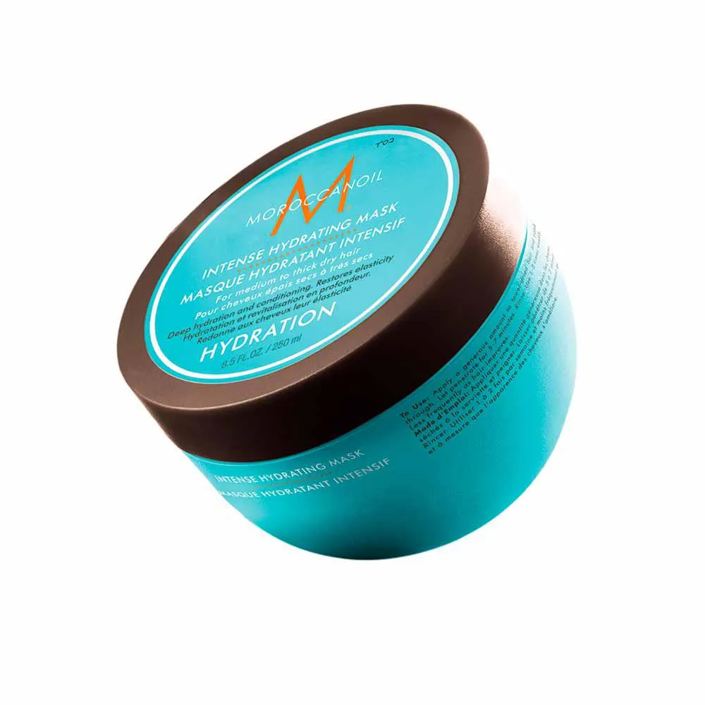 A Intense Hydration Mask Moroccanoil é mais adequada para cabelos com texturas médias e grossas. Hidrata profundamente e reduz a estática.