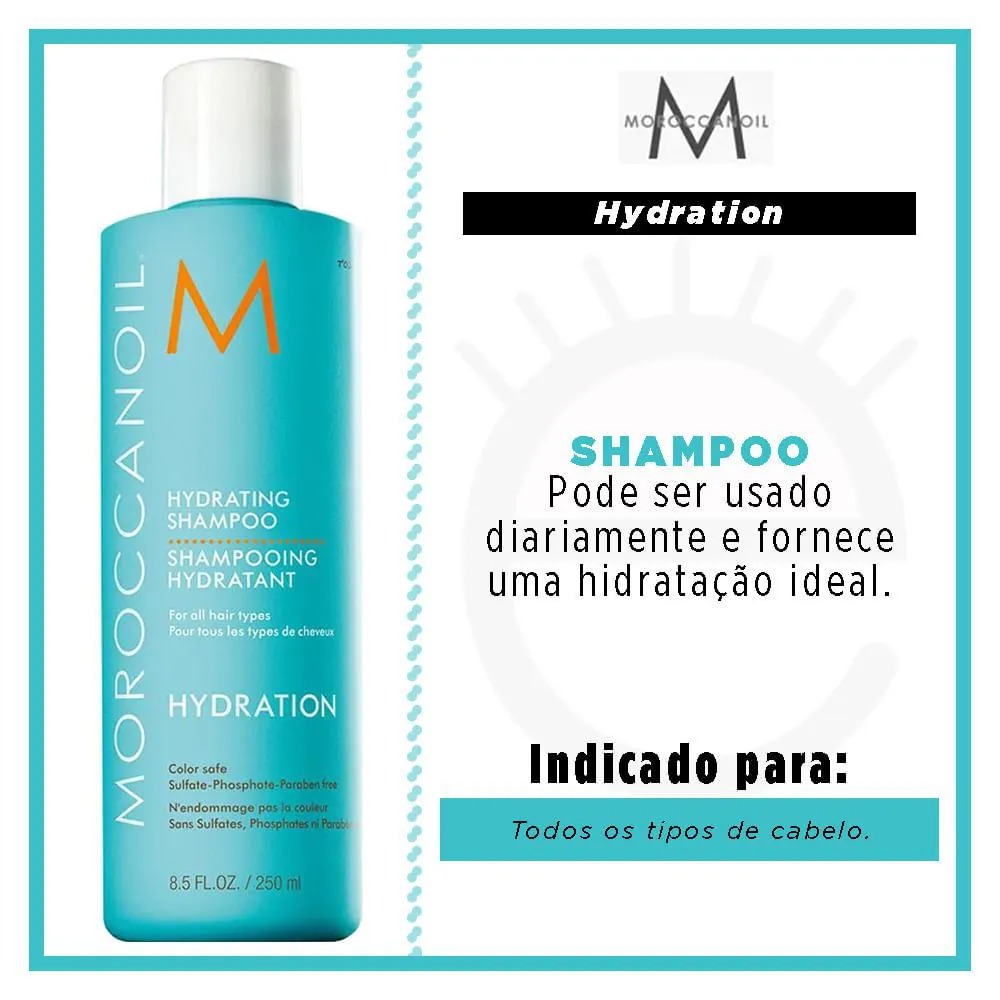 Dê aos cabelos desidratados e secos a hidratação que ele precisa. O shampoo hidratante Moroccanoil condiciona os cabelos com o óleo de argan rico em antioxidantes, vitaminas A e E e algas vermelhas promotoras da hidratação, para que os cabelos tenham a aparência e a sensação de saudáveis. Esse shampoo hidratante é suave para poder ser usado diariamente e fornece uma hidratação ideal tanto aos cabelos normais como aos cabelos tingidos. Aumente a maneabilidade, a maciez e o brilho de seus cabelos, sem alterar a cor dos cabelos tingidos. Não contém sulfato, fosfato ou parabenos.