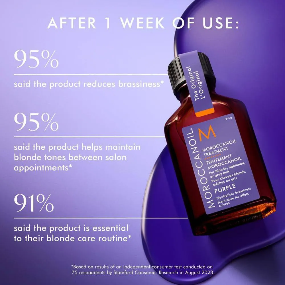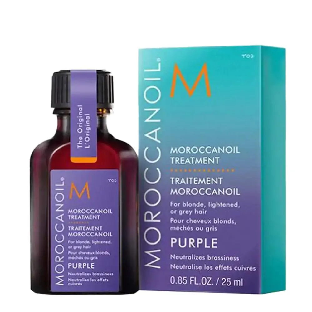O Moroccanoil Traitement Purple - Óleo Capilar 25ml é ideal para quem deseja manter cabelos loiros ou grisalhos vibrantes, combinando correção de tom com cuidados intensivos em um formato prático.