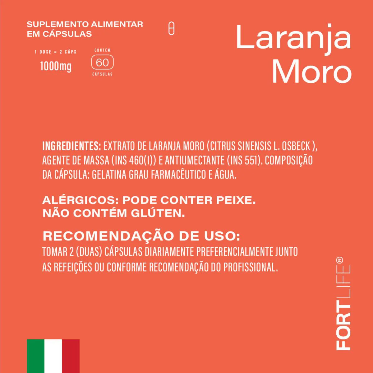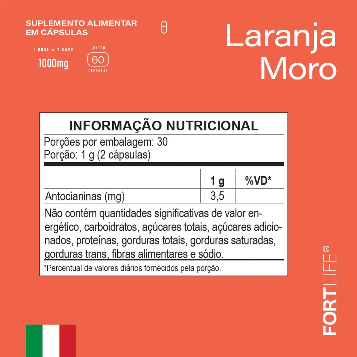 - Suplemento natural derivado da Laranja Moro cultivada em solo vulcânico italiano.