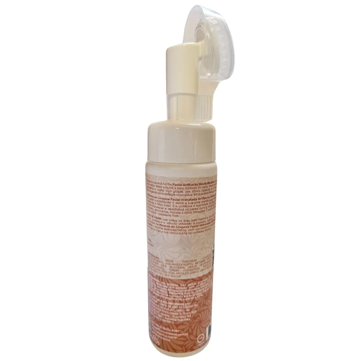 Modo de Uso: Aplique todos os dias, pela manhã e à noite. Com o rosto úmido, pressione a válvula ativando a espuma, aplique uma pequena quantidade da Mousse de Limpeza Facial Hidratada Griffus by Gizelly Bicalho e espalhe delicadamente, com movimentos circulares. Enxágue com água e siga a sua rotina diária de cuidados faciais.
