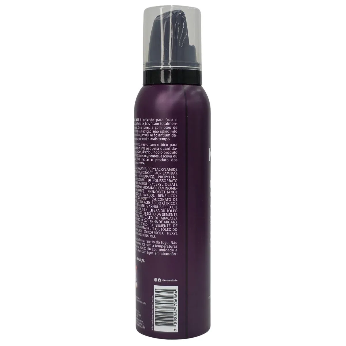 Composição: aqua (água), acrylaes/octylacrylamide copolymer (copolímero de acrilatos/octilacrilamida), butane (butano), isobutane (isobutano), propylene glycol (propileno glicol), polysorbate 20 (polissorbato 20), coco-glucoside (coco-glicosídeo), glyceryl oleate (oleato de glicerila), aminomethyl propanol (aminome-tilpropanol), propane (propano), Phenoxyethanol (fenoxietanol), benzyl alcohol (álcool benzílico), parfum (fragrância), sodium gluconate (gliconato de sódio), panthenol )pantenol), citric acid (ácido citríco), BHT (butil-hidroxitolueno), helianthus annus seed oil (óleo da semente de girassol),cocos nucifera oil (óleo de coco), linum usitatissium seed oil (óleo da semente de linhaça), persea gratissima oil (óleo de abacate), argania spinosa kernel oil ( óleo da castanha de argan), macadamia ternofolia seed oil (óleo da semente de macadamia ternifolia), oleo europaea fruit oil ( óleo do fruto de oliveira), tocopherol (tocoferol), hexyl cinnamal (hexil Cinamal), linalool (linalool) .