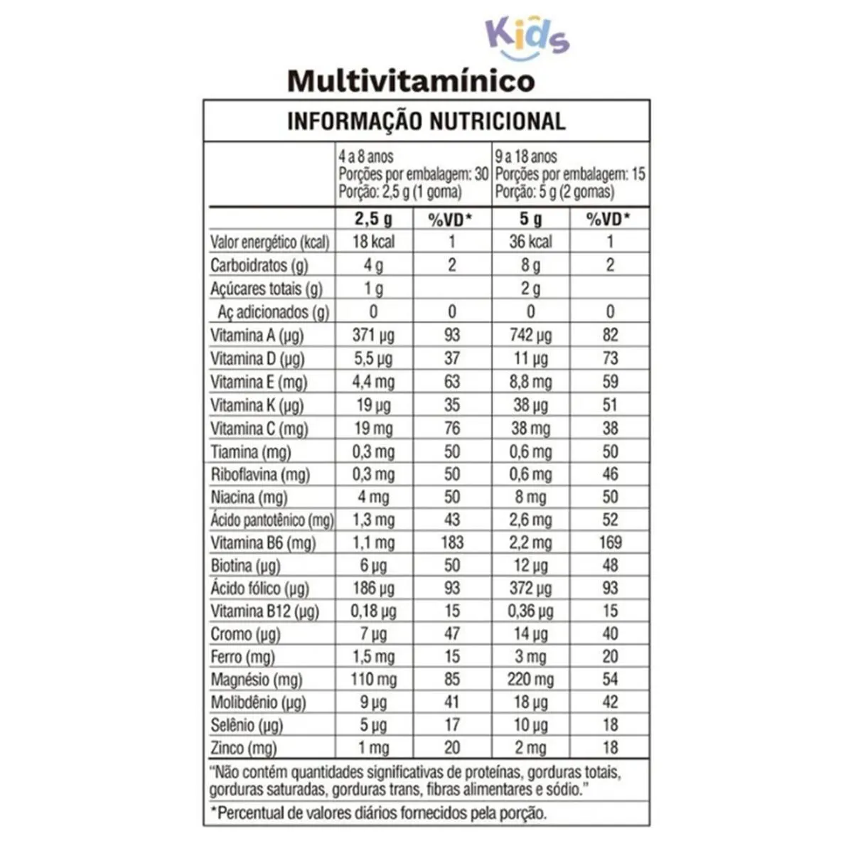 - Para crianças de 4 a 8 anos, ingerir 1 goma ao dia.