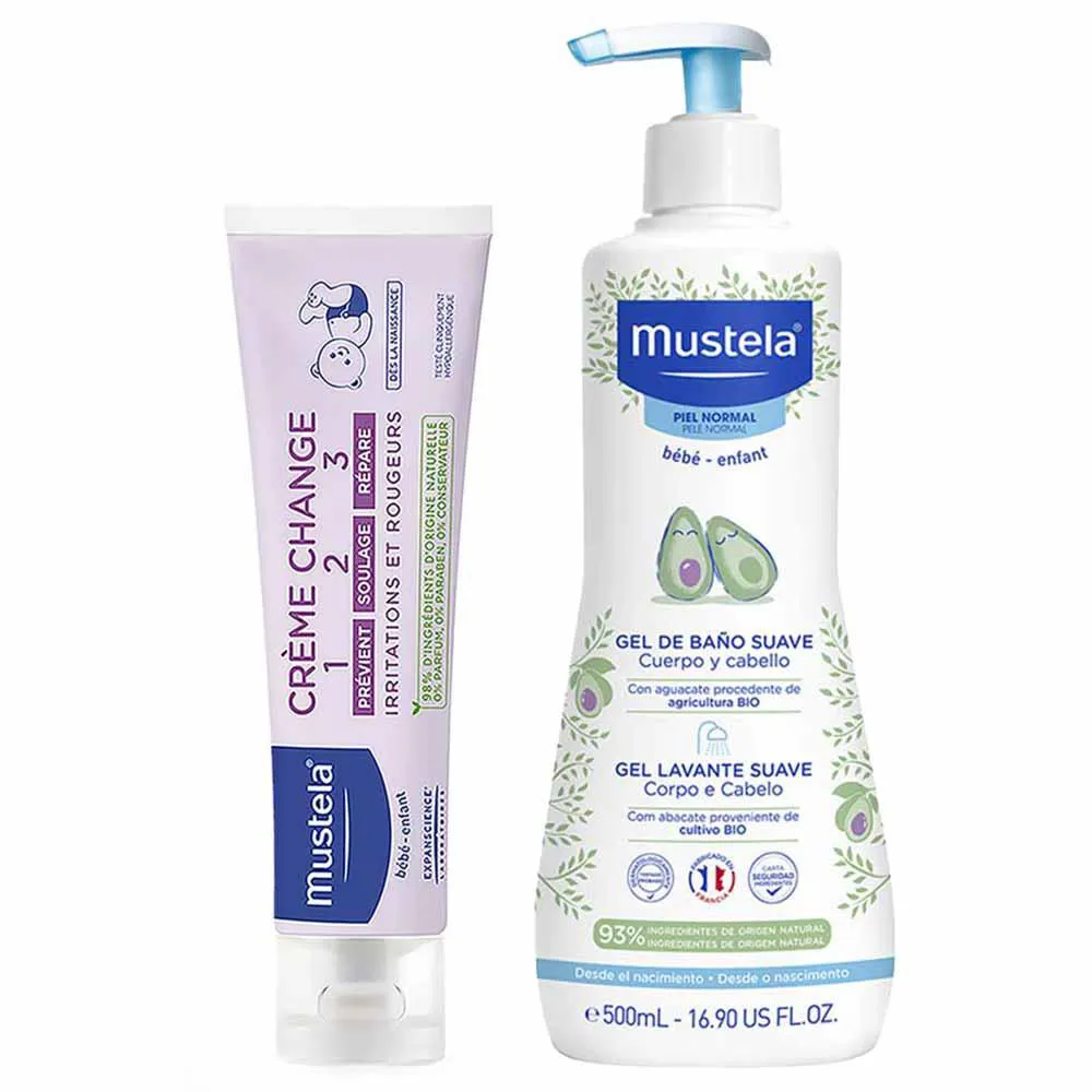 O Mustela Bebê Kit - Creme Preventivo de Assaduras + Gel Lavante Corpo e Cabelo é um conjunto essencial para o cuidado diário dos bebês.