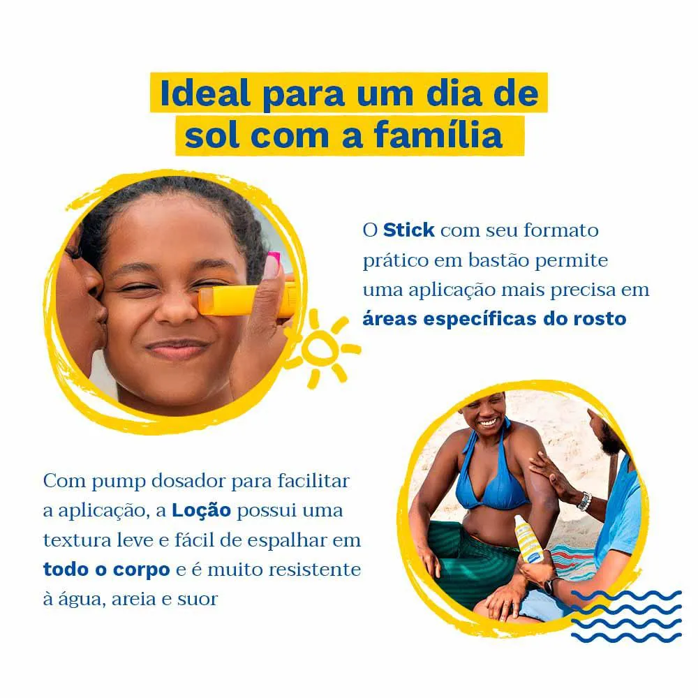 - Proteção solar eficaz com FPS50+ para toda a família;