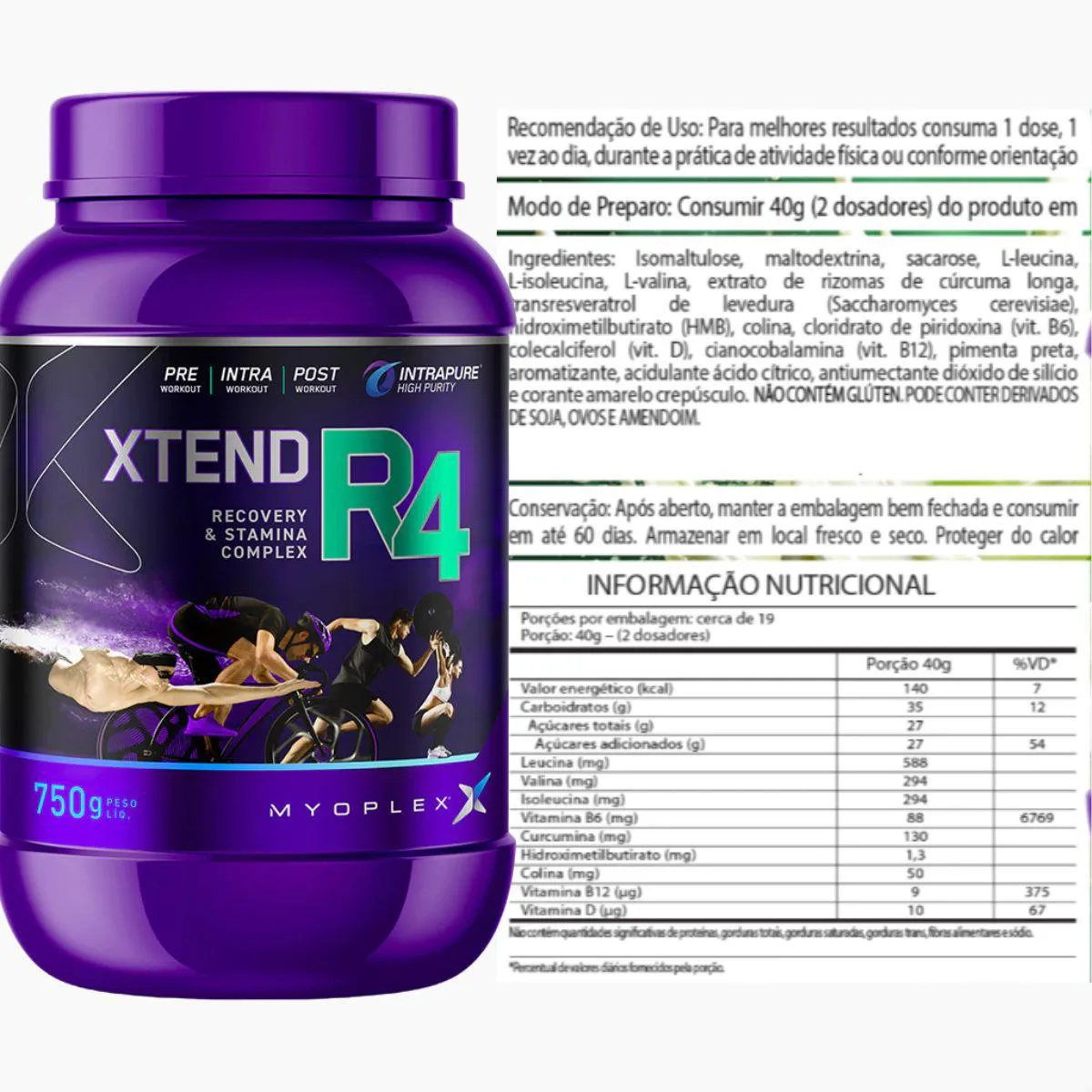 - Durante ou após treinos, prepare o Xtend R4 para reposição de eletrólitos e BCAAs, seguindo as orientações do rótulo.