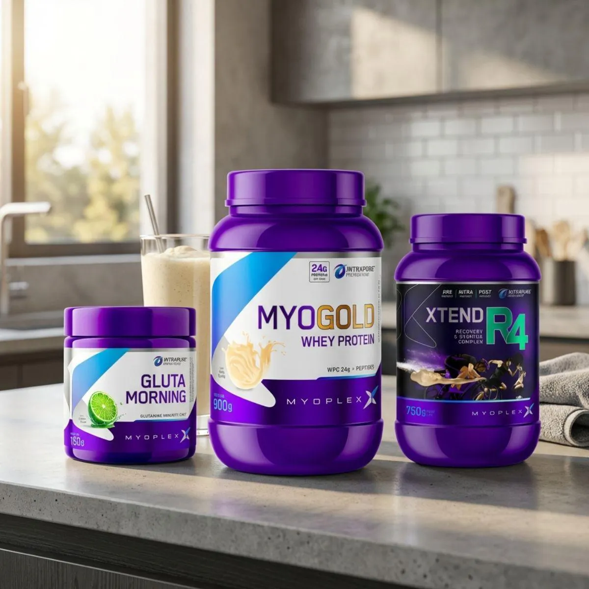 O que é e para que serve os Myo Gold Baunilha + Gluta Morning + Xtend R4 Myoplex?