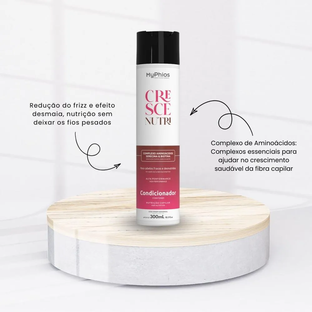 O Condicionador Cresce Nutri da MyPhios foi desenvolvido para nutrir e fortalecer os fios, promovendo cabelos mais saudáveis e resistentes à quebra. Sua fórmula potente ajuda a reduzir o