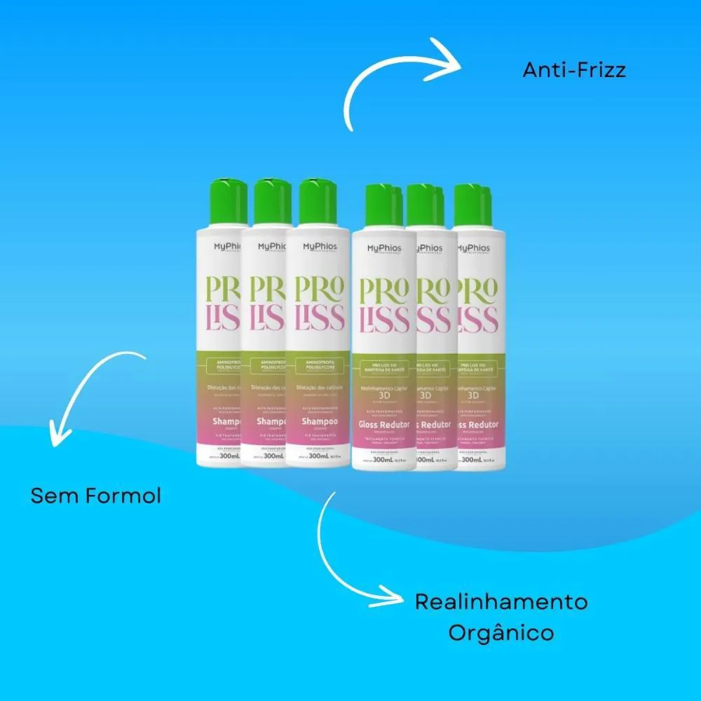 ProLiss MyPhios Realinhamento orgânico Totalmente livre de formol, sem cheiro forte e sem ardência nos olhos e couro cabeludo.