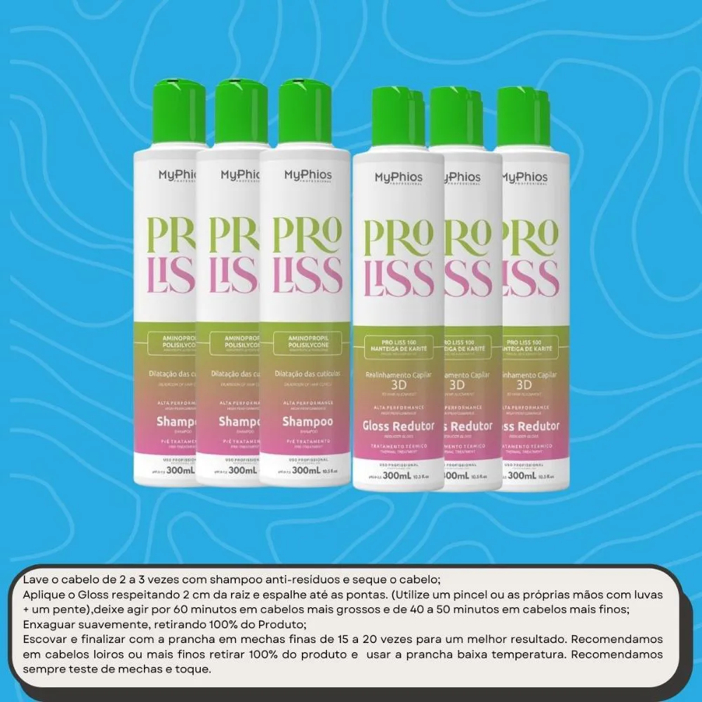 03 Unidades MyPhios Professional ProLiss Pré Tratamento Shampoo 300ml 03 Unidades MyPhios Professional ProLiss Tratamento Térmico Gloss Redutor 300ml