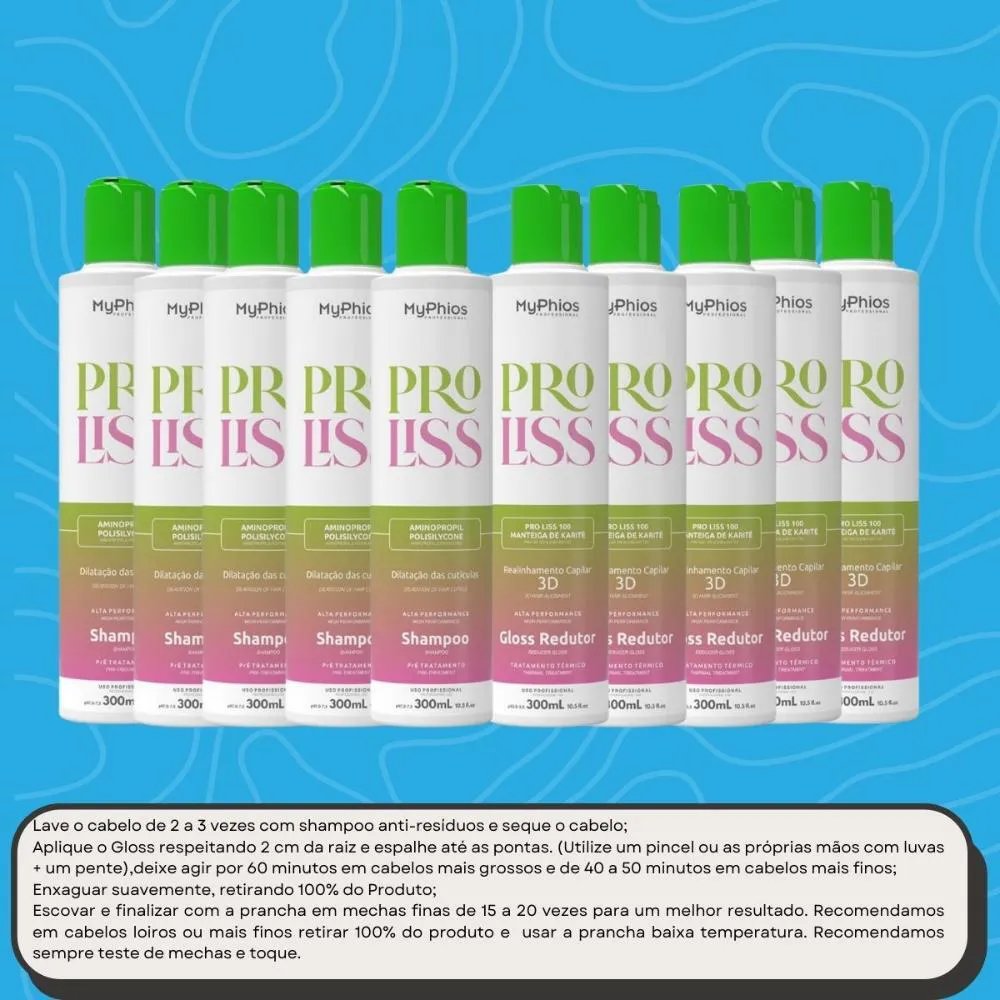 05 Unidades MyPhios Professional ProLiss Pré Tratamento Shampoo 300ml 05 Unidades MyPhios Professional ProLiss Tratamento Térmico Gloss Redutor 300ml
