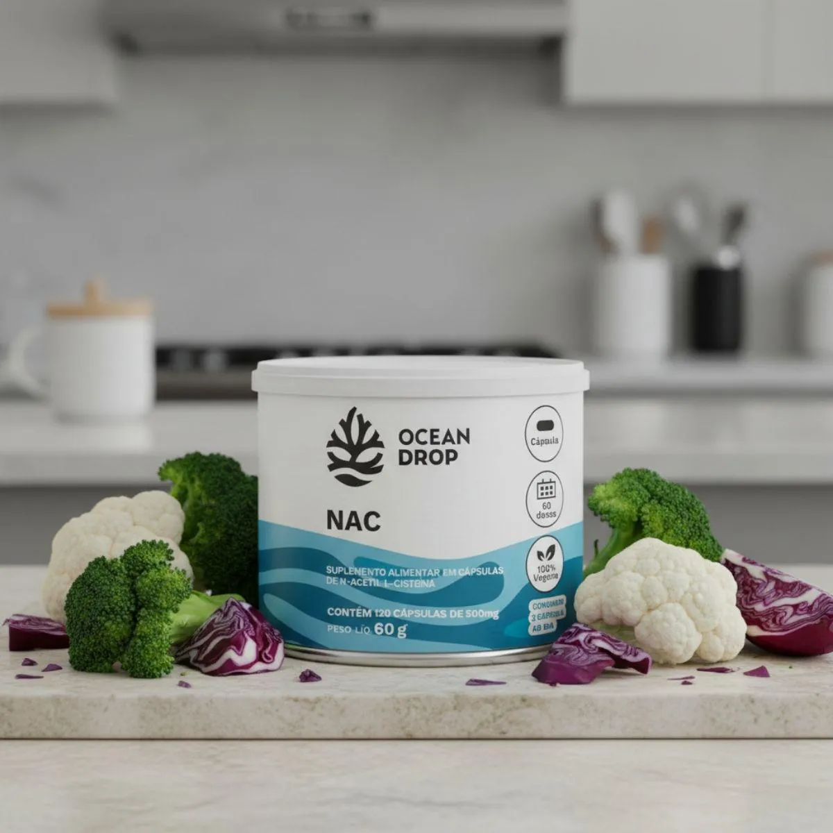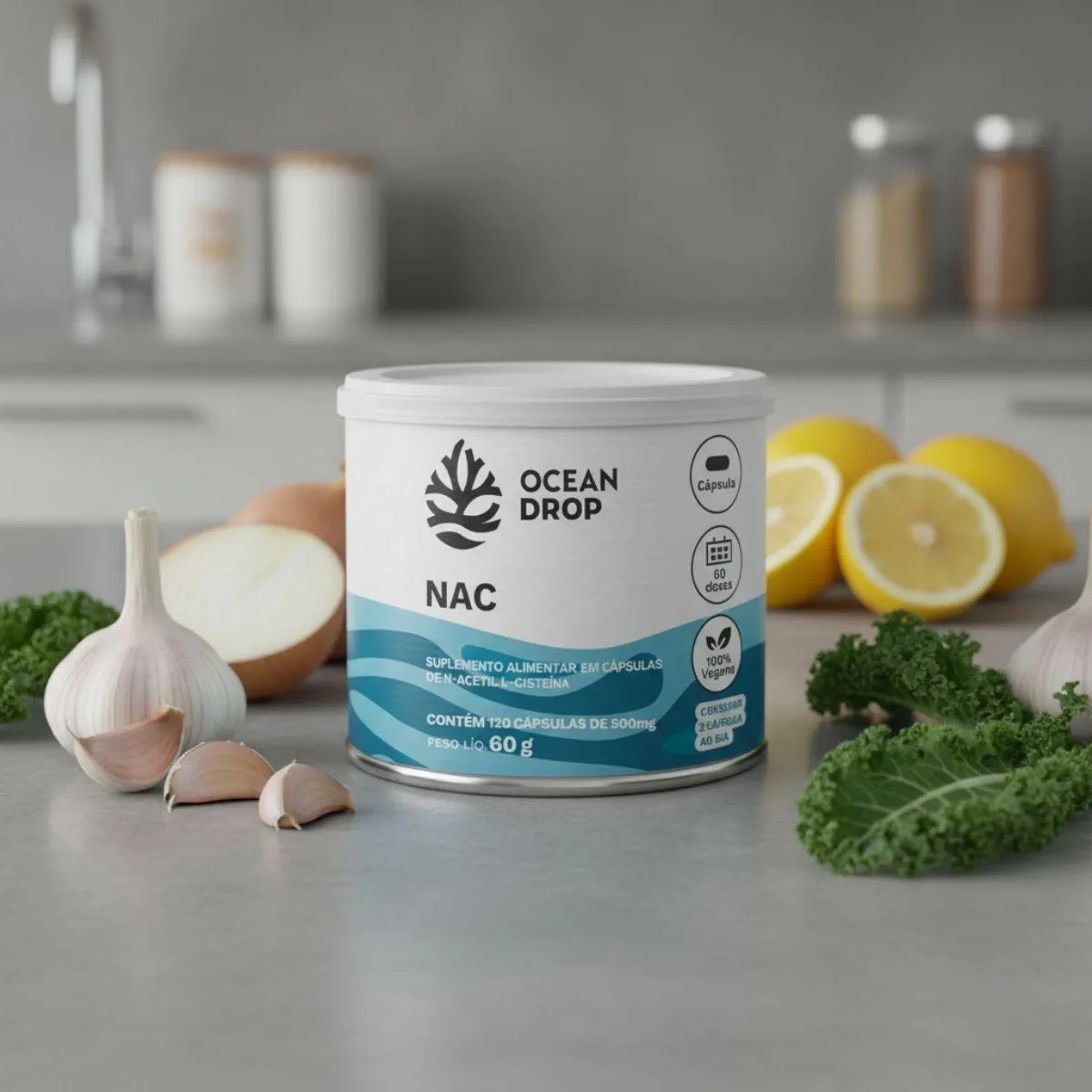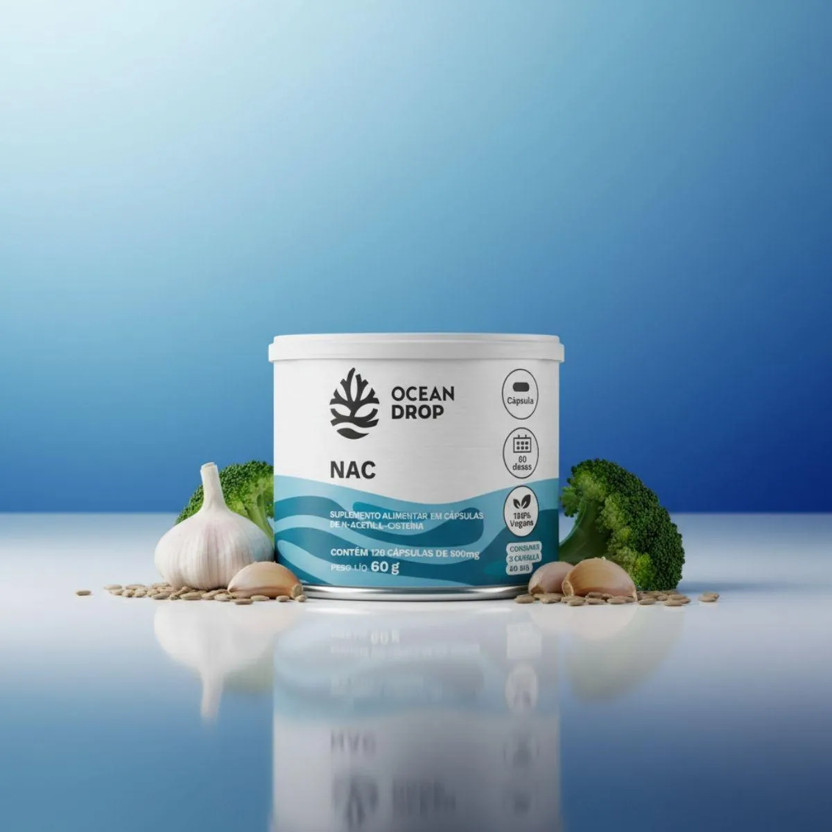 A formulação traz N-acetilcisteína de origem vegana, sem aditivos artificiais e com ênfase na transparência dos ingredientes. A Ocean Drop prioriza processos cuidadosos e escolhas mais naturais, resultando em um suplemento compatível com diferentes estilos de vida, incluindo práticas alimentares baseadas em vegetais.