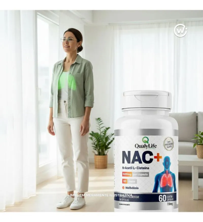 Suplemento alimentar em cápsulas formulado com N-acetil L-cisteína (NAC), um derivado do aminoácido cisteína amplamente utilizado em protocolos nutricionais voltados ao suporte antioxidante e ao metabolismo celular. A apresentação com 60 cápsulas oferece praticidade para uso diário e contínuo.Resumo dos Diferenciais