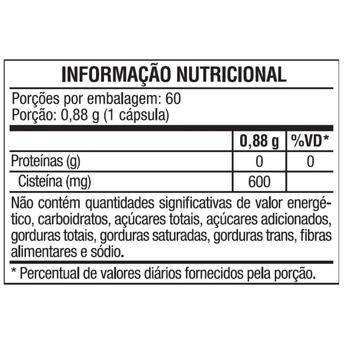 - 600 mg de N-acetil L-cisteína (NAC) por porção.