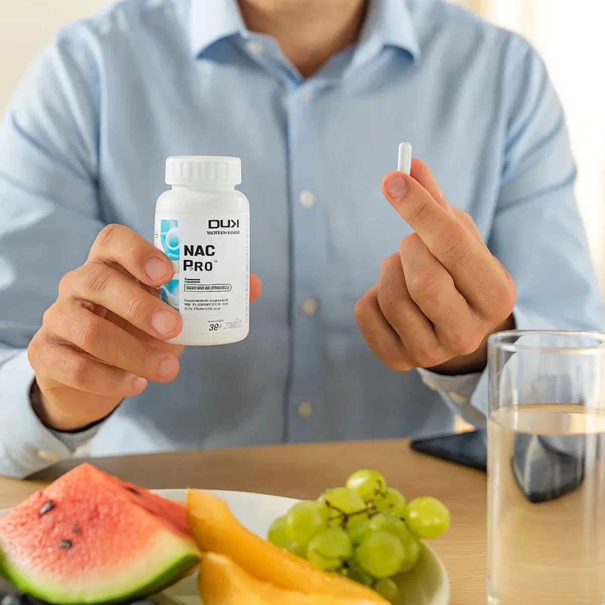 Recomenda‑se ingerir uma cápsula ao dia, preferencialmente com uma refeição, para melhor absorção. A suplementação de NAC deve ser acompanhada por profissional de saúde, que avaliará a necessidade individual e possíveis interações com medicamentos.