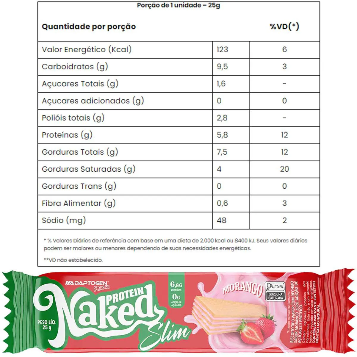 A versão slim do seu snack proteico favorito, na medida certa para qualquer hora! O Naked Protein Slim chega com a mesma qualidade e sabor irresistível da versão original, mas em um formato compacto e funcional. Com 5g de proteína por porção, ele é ideal para quem deseja controlar melhor as porções ou busca uma opção mais leve para os intervalos entre as refeições. Com 0g de adição de açúcares, baixo teor de gorduras saturadas, somente 123 kcal por unidade, e disponível nos mesmos quatro sabores deliciosos da linha Naked — Avelã, Torta de Limão, Morango e Coco —, o Naked Slim é a escolha certa para manter sua rotina saudável sem abrir mão do sabor. Perfeito para levar na bolsa, mochila ou deixar na gaveta do escritório, o Naked Protein Slim mostra que lanche proteico também pode ser prático, saboroso e equilibrado. Agora você tem duas opções de tamanho para combinar com a sua fome — e com a sua rotina. Instruções de uso