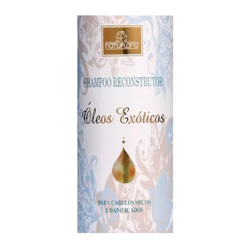 O shampoo Reconstrutor da Natuflora é preparado com óleos exóticos de Argan, óleo de batana e cartamo, mais complexo de aminoácidos e vitaminas, restaura os cabelos danificados, dando vida, maleabilidade e brilho. Pois ajuda a restaurar a cutícula do cabelo danificada pelas tinturas, alisamento e produtos químicos.