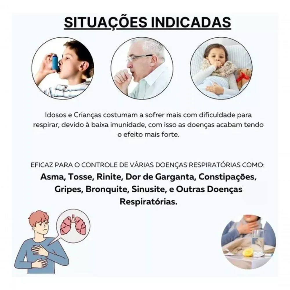 medicamentos líquidos em uma névoa fina, que é rapidamente absorvida pelas vias respiratórias, proporcionando alívio para condições como asma, bronquite, gripes, resfriados e outras doenças respiratórias.Características:Tecnologia Ultrassônica: Vibrações de alta frequência transformam o medicamento em um aerossol fino, aumentando a eficácia do tratamento.Baixo Nível de Ruído: Operação silenciosa, perfeita para não incomodar durante o sono ou quando em ambientes tranquilos.Portátil e Leve: Ideal para levar para qualquer lugar, seja em