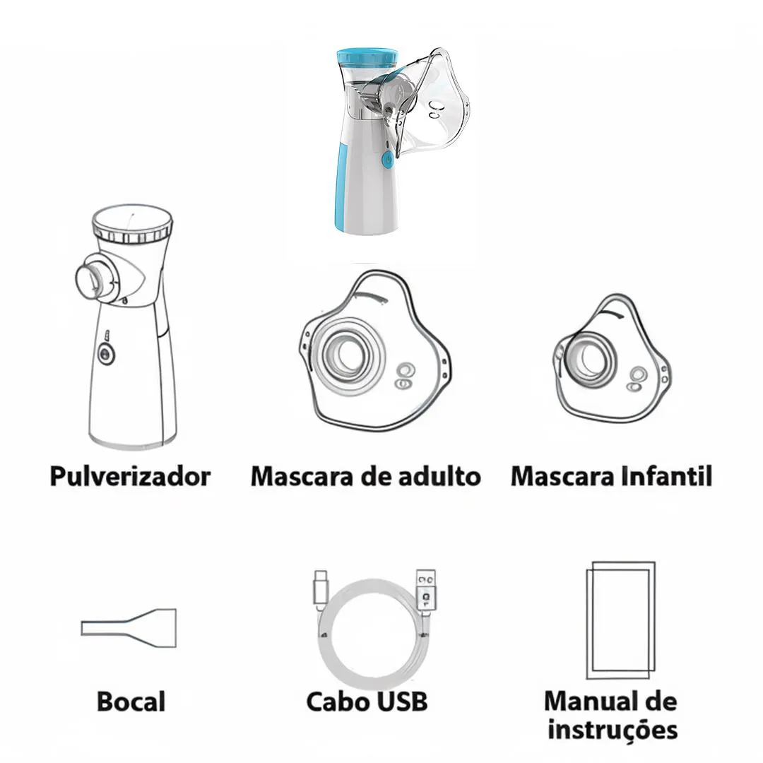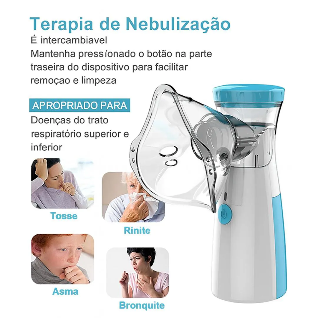 Nebulizador Portátil HHW302PLUS Mesh Recarregável para Adultos e Crianças Branco Azul