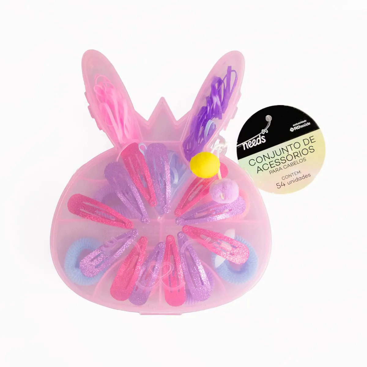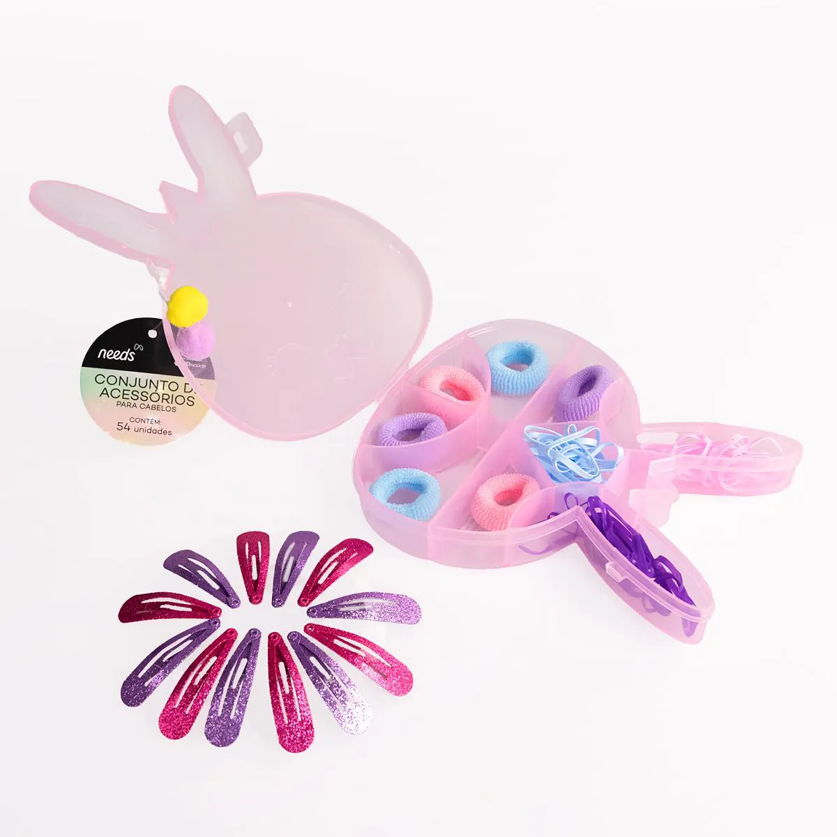- Conjunto com elásticos e tic-tacs variados para penteados estilosos.
