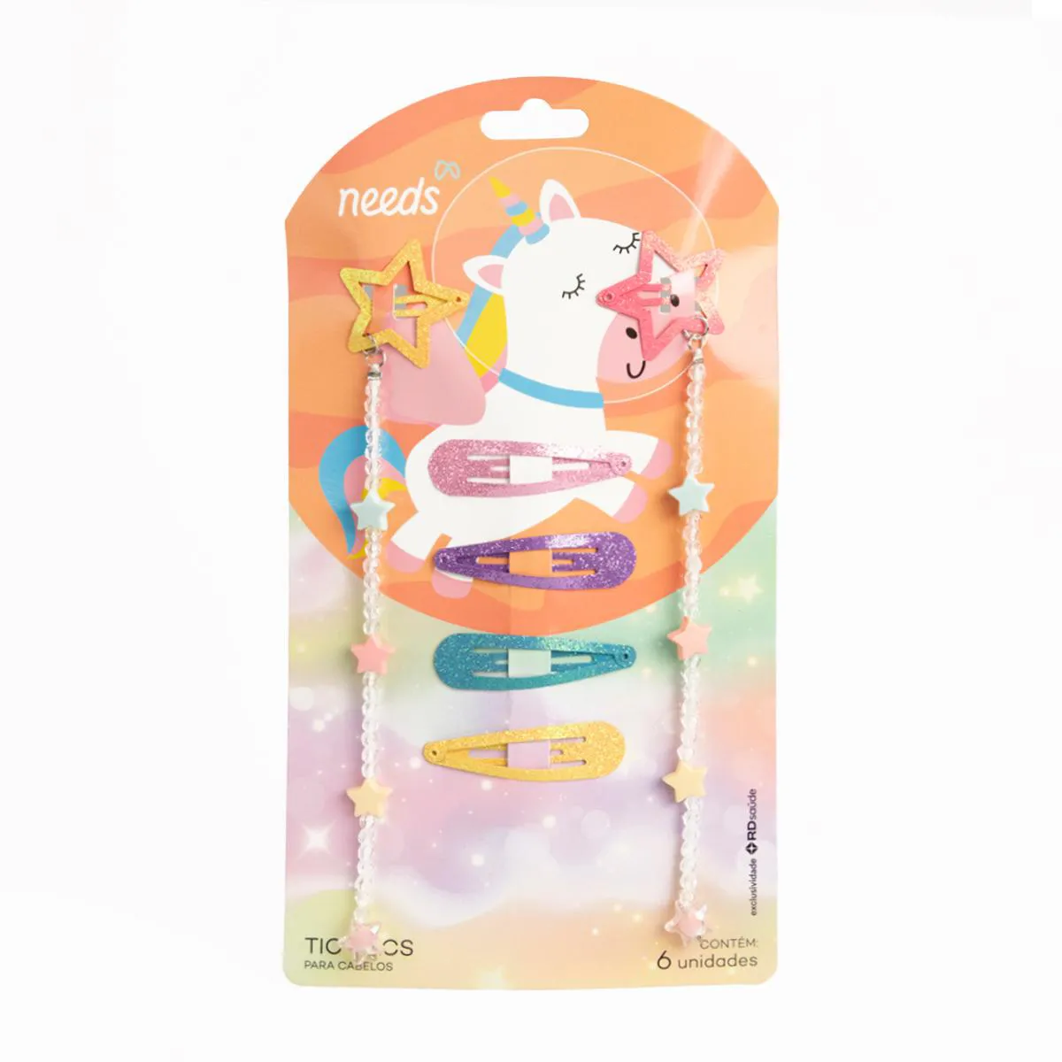 Presilha de Cabelo Tic-Tac Needs Infantil Metal Estrelas 6 unidades