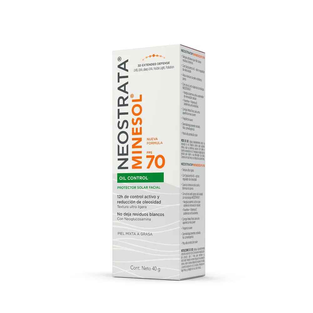 Protetor solar facial indicado para peles mistas, oleosas e acneicas, o Neostrata Minesol Protetor Solar Facial Sem Cor FPS 70 com 40 gramas oferece alta proteção contra os raios UVA, UVB, UVA longo, luz visível e poluição, além de combater os radicais livres e controlar a oleosidade por até 12 horas.