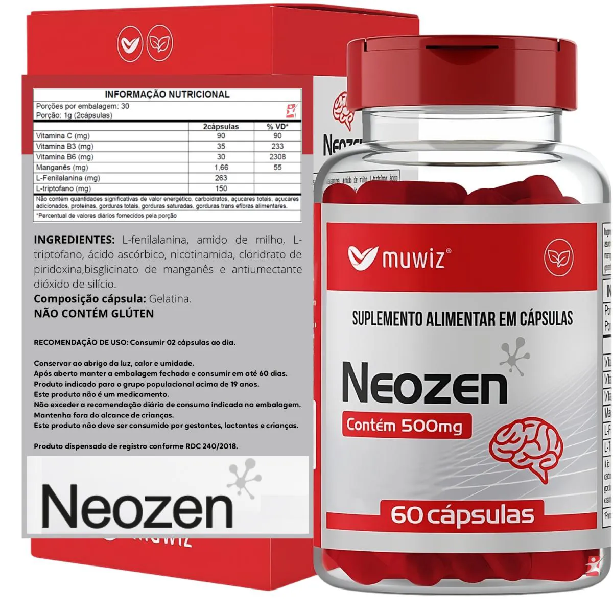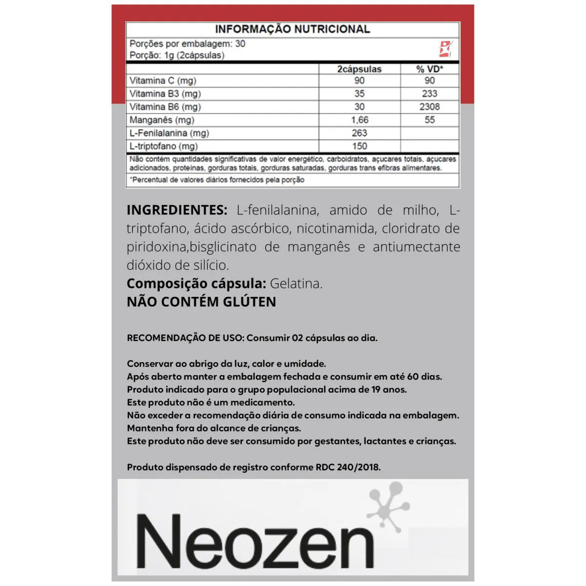 Neozen - Triptofano + Fenilalanina + Manganês + Vit B3 + Vit B6 + Vit C 60 Capsulas - Muwiz