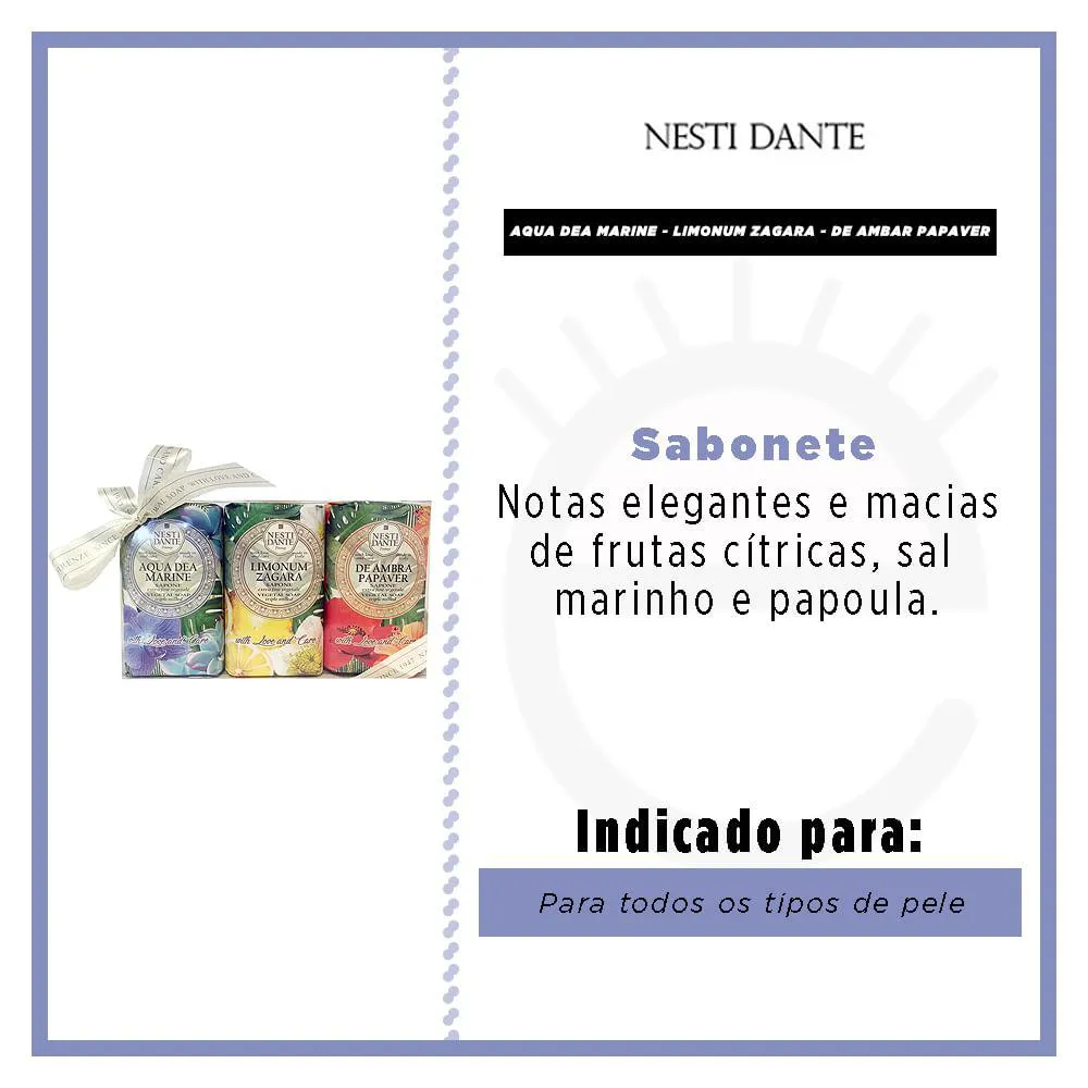 Fundada em 1947. Sempre fiel a Dante, a filosofia do fundador - "sempre trabalharemos para não ser o maior, mas o melhor", os mestres Perfumers desenvolveram uma fórmula que incorpora uma seleção exclusiva de matérias-primas raras e de alta qualidade. Estes foram refinados através de um processo lento de maceração que mantém o equilíbrio delicado dos altos níveis de concentração no sabão. O método tradicional de saponificação de caldeiras e o uso exclusivo de óleos essenciais de alta qualidade realçam os aromas que combinam corpo e personalidade. “With Love and Care by Nesti Dante” não é apenas atraente para a fragrância, mas também para a sensação de bem-estar que ela cria.