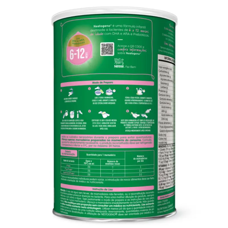 Nestogeno 2 é uma fórmula infantil de seguimento para lactentes de 6 a 12 meses de idade com prebióticos.AVISO IMPORTANTE: ESTE PRODUTO SOMENTE DEVE SER USADO NA alimentação DE CRIANÇAS MENORES DE 1 (UM) ANO DE IDADE, COM INDICAÇÃO EXPRESSA DE MÉDICO OU NUTRICIONISTA. O ALEITAMENTO MATERNO EVITA INFECÇÕES E ALERGIAS, E FORTALECE O VÍNCULO MÃE-FILHO.