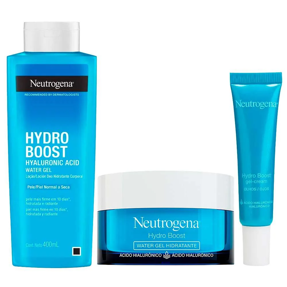 Neutrogena Hydro Boost Kit – Hidratante Facial + Gel Creme para Olhos + Hidratante Corporal