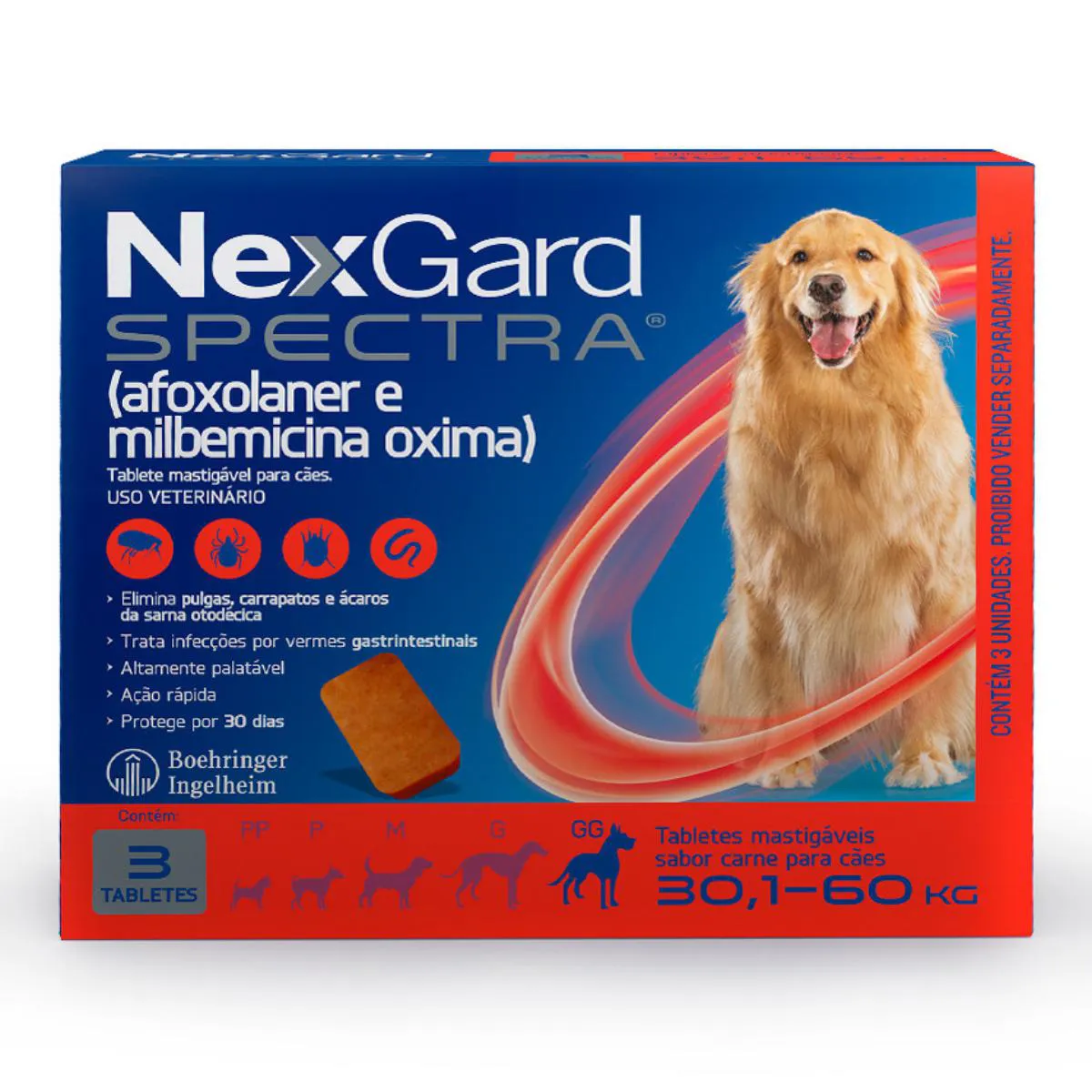 Nexgard Spectra Antipulgas e Carrapatos para Cães de 30,1 a 60Kg 3 Tabletes Mastigáveis