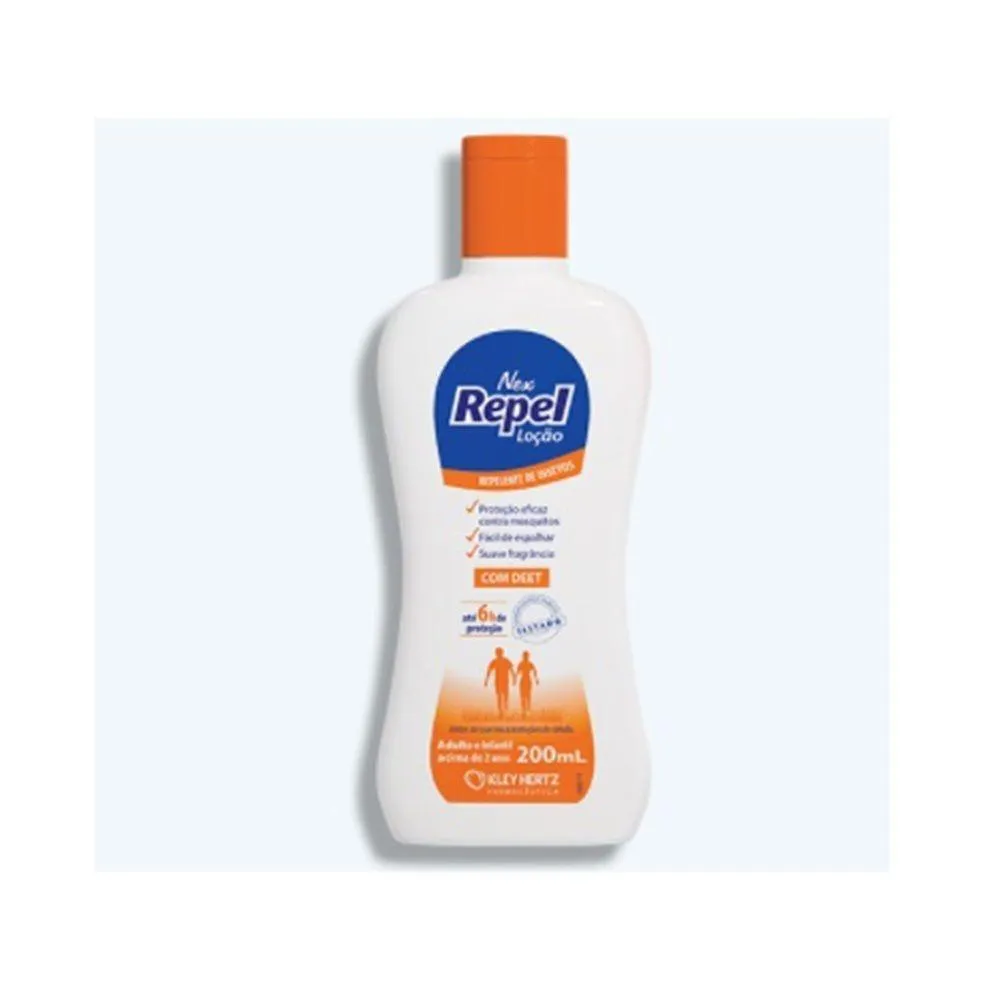 Nex Repel é uma linha de repelente de insetos. Nex Repel com DEET é de fácil aplicação e possui formulação não-oleosa, garantindo, em sua apresentação aerossol, até 4 horas de proteção. A loção protege por até 6 horas, enquanto a versão em spray protege por até 2 horas. Com rápida absorção, proporciona sensação de frescor na pele. Protege contra o mosquito Aedes Aegypti, transmissor de dengue, zika vírus e febre Chikungunya. É dermatologicamente testado, secagem rápida e fragrância suave. Nex Repel Max, com Icaridina, é um repelente de insetos de alta eficácia, garantindo até 10 horas de proteção. É dermatologicamente testado, hipoalergênico, avaliado por pediatra e sem perfume para não atrair insetos. Protege contra o mosquito Aedes Aegypti, transmissor de dengue, zika vírus e febre Chikungunya, além de proteger também contra os mosquitos Anopheles aquasalis (transmissor da MALÁRIA), pernilongo e muriçoca. Nex Repel Loção 200mL