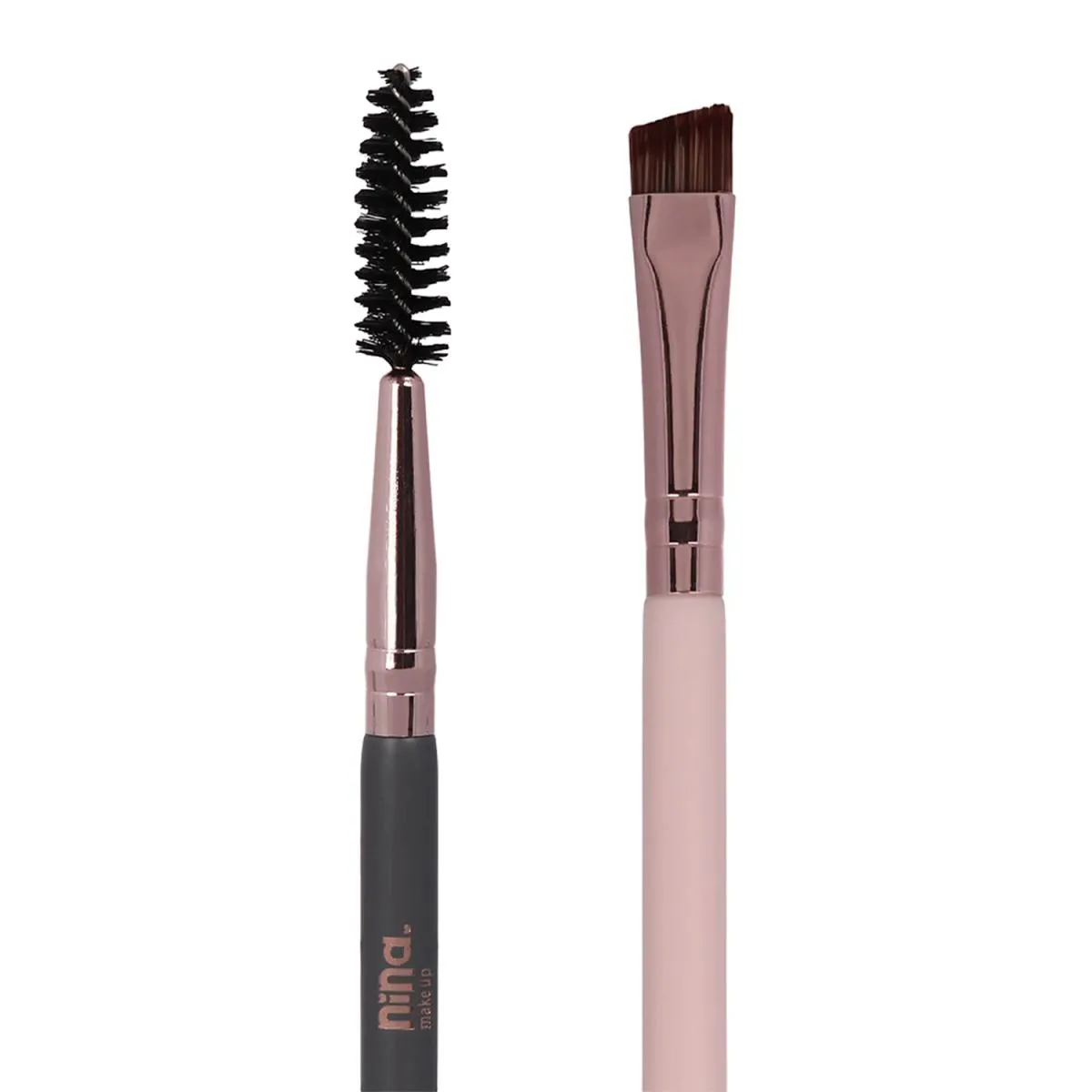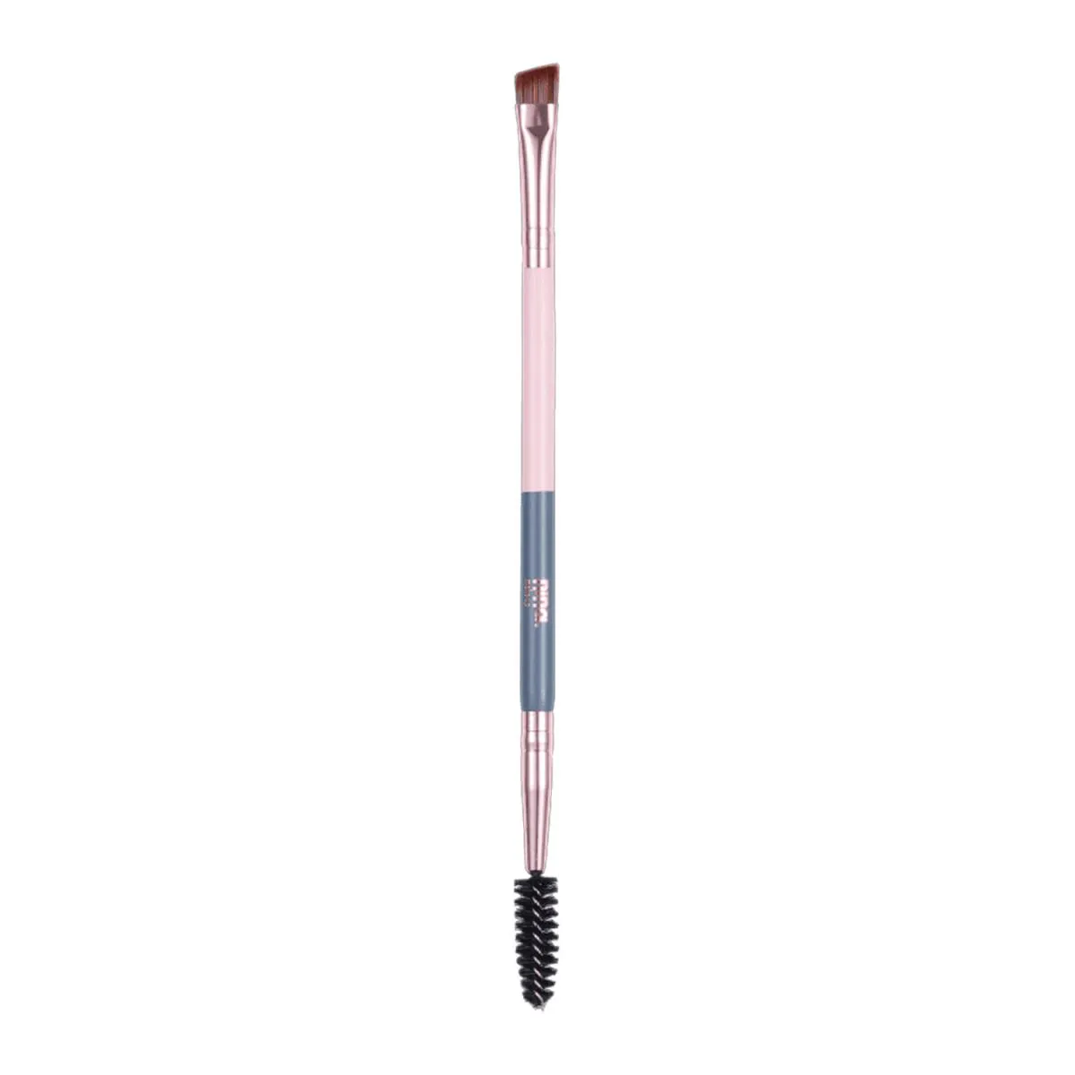 O PINCEL DUO PARA SOBRANCELHAS possui uma ponta no formato escovinha para pentear as sobrancelhas e a outra extremidade com o pincel chanfrado para delinear os fios.