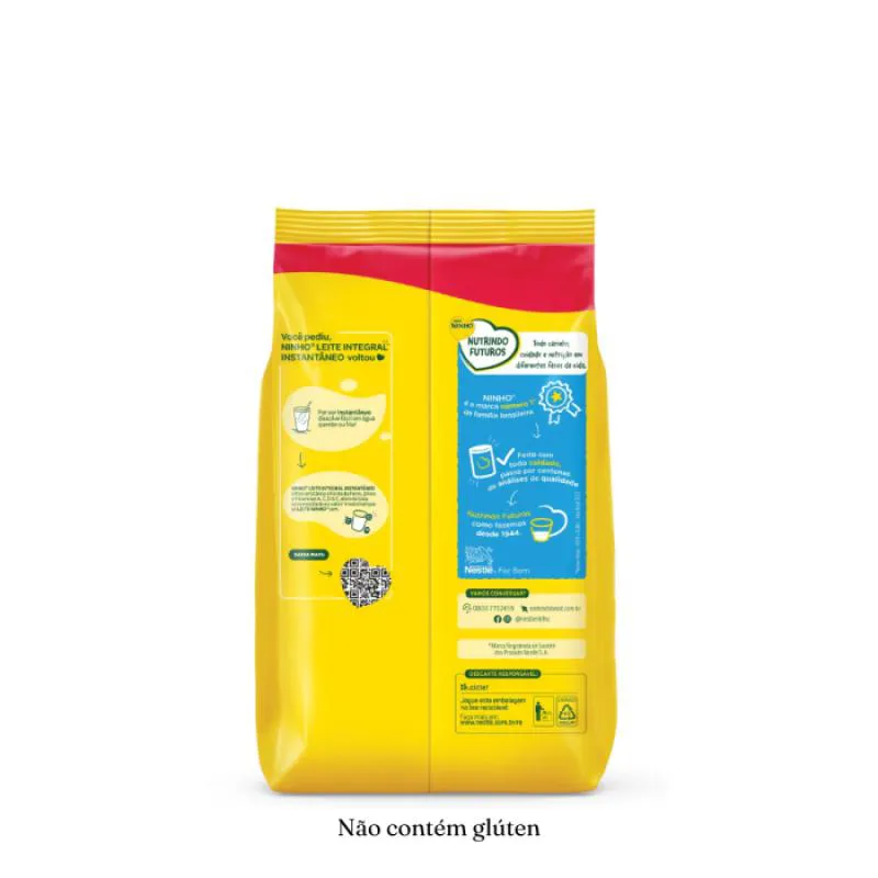 Você pediu, NINHO® LEITE INTEGRAL INSTANTÂNEO voltou Por ser Instantâneo, dissolve fácil em água quente ou fria! NINHO® LEITE INTEGRAL INSTANTÂNEO é Rico em Cálcio e Fonte de Ferro, Zinco e Vitaminas A, C, D & E, além de toda a cremosidade e o sabor irresistível que só LEITE NINHO® tem."AVISO IMPORTANTE: ESTE PRODUTO NÃO DEVE SER USADO PARA ALIMENTAR CRIANÇAS MENORES DE 1 (UM) ANO DE IDADE, EXCETO POR INDICAÇÃO EXPRESSA DE MÉDICO OU NUTRICIONISTA. O ALEITAMENTO MATERNO EVITA INFECÇÕES E ALERGIAS E É RECOMENDADO ATÉ OS 2 (DOIS) ANOS DE IDADE OU MAIS."