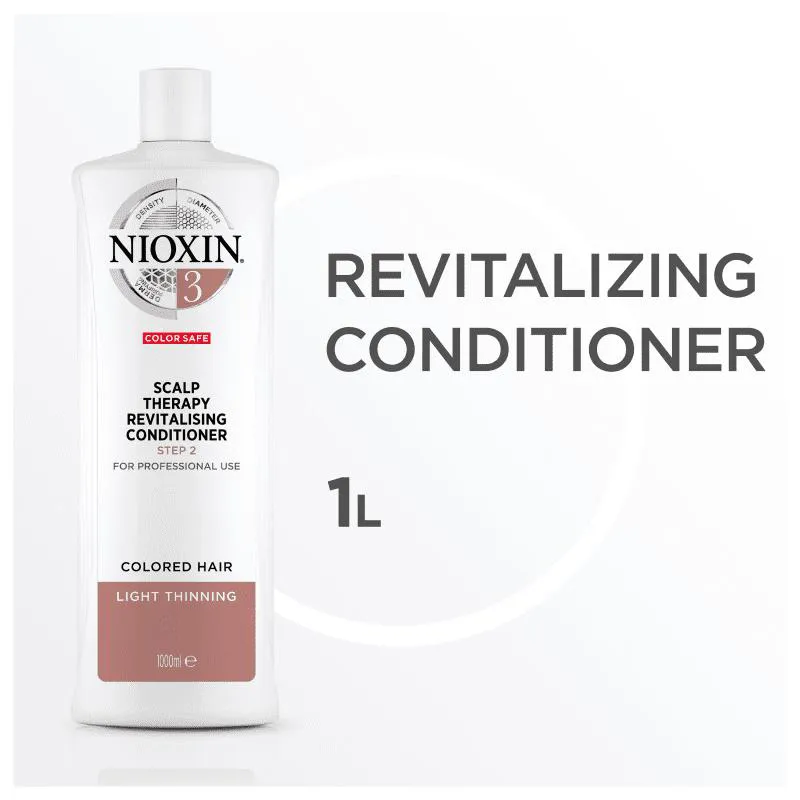 Condicionador para fios com afinamento leve e coloração. Nioxin System 3 Scalp Therapy Revitalizing recupera a densidade, dá resistência e hidrata. Também protege a cor e impede o desbotamento. Nioxin System 3 Scalp Therapy Revitalizing possui tecnologia que equilibra o nível de hidratação dos fios e couro cabeludo para proporcionar mais