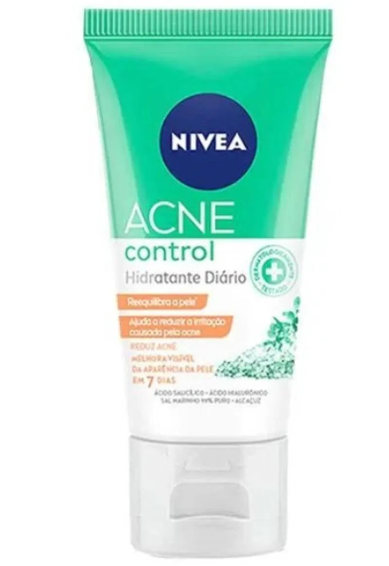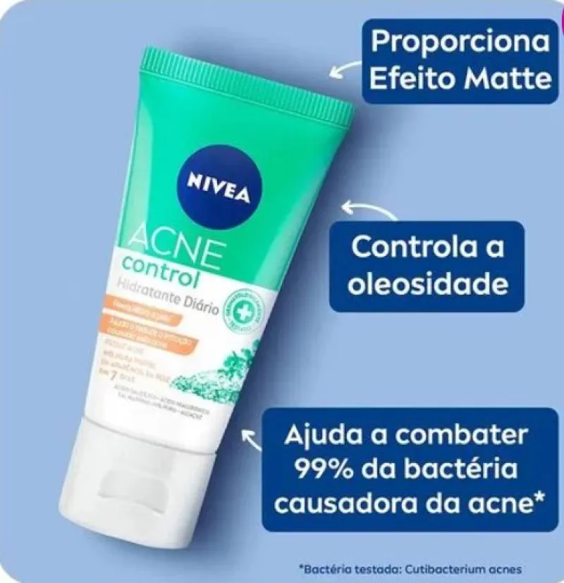 Nova linha de acne Control da NIVEA apresenta este hidratante facial que reduz a acne e melhora visível da aparência da pele em apenas 7 dias. Ajuda a reduzir a irritação causada pela acne. Para que serve o NIVEA Hidratante Facial Acne Control? Reduz a acne e ajuda a reequilibrar a pele de 5 maneiras: