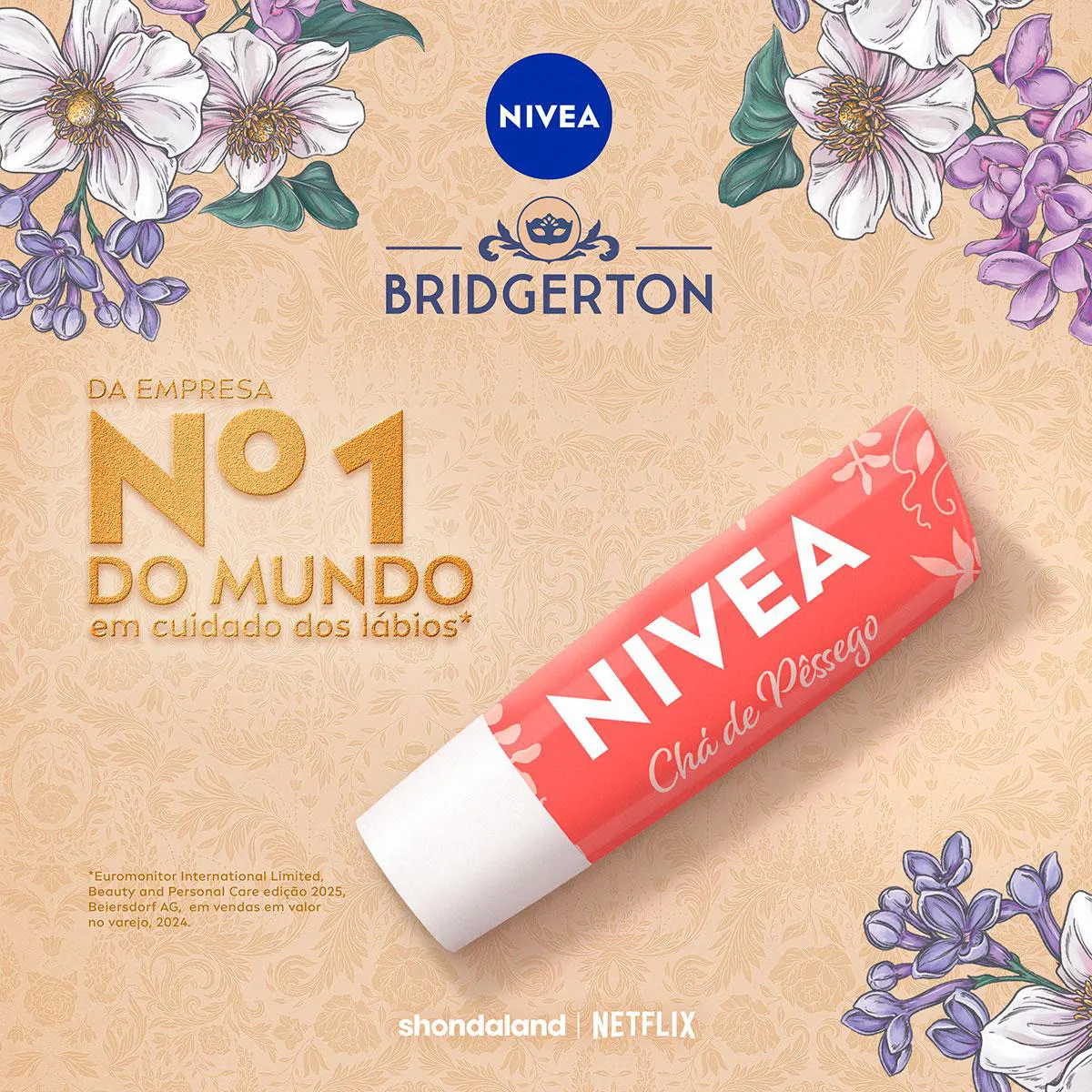 - Nivea Hidratante Labial Chá De Pêssego Bridgerton é um produto usado para hidratar e proteger os lábios diariamente.