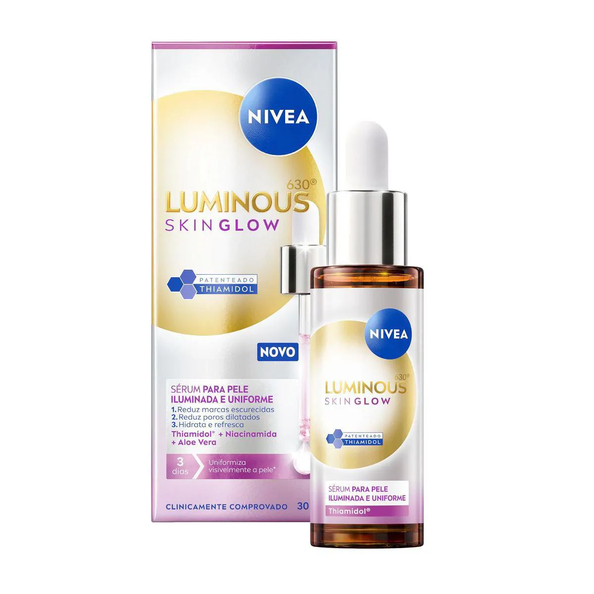 O Nivea Luminous630 Skin Glow é um sérum facial desenvolvido para quem busca uma pele com brilho natural, uniforme e saudável. Sua fórmula potente, enriquecida com Thiamidol, Niacinamida e Aloe Vera, atua em três dimensões: reduz manchas, diminui poros dilatados e hidrata profundamente. Além disso, promove uma sensação refrescante imediata e pode ser usado como primer antes da maquiagem.